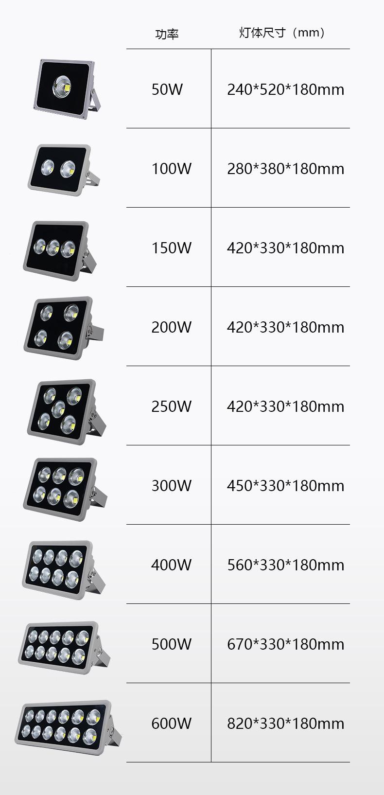 50w, 100W, 150W, 200W, 250W, 300W, 400W, 500W, 600W