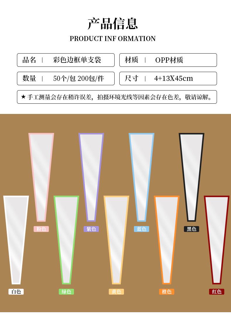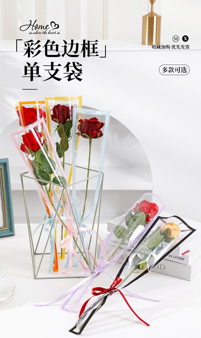Bolsa individual con marco de colores brillantes, papel de plástico opp para envolver flores, bricolaje, impermeable, floristería, materiales florales al por mayor