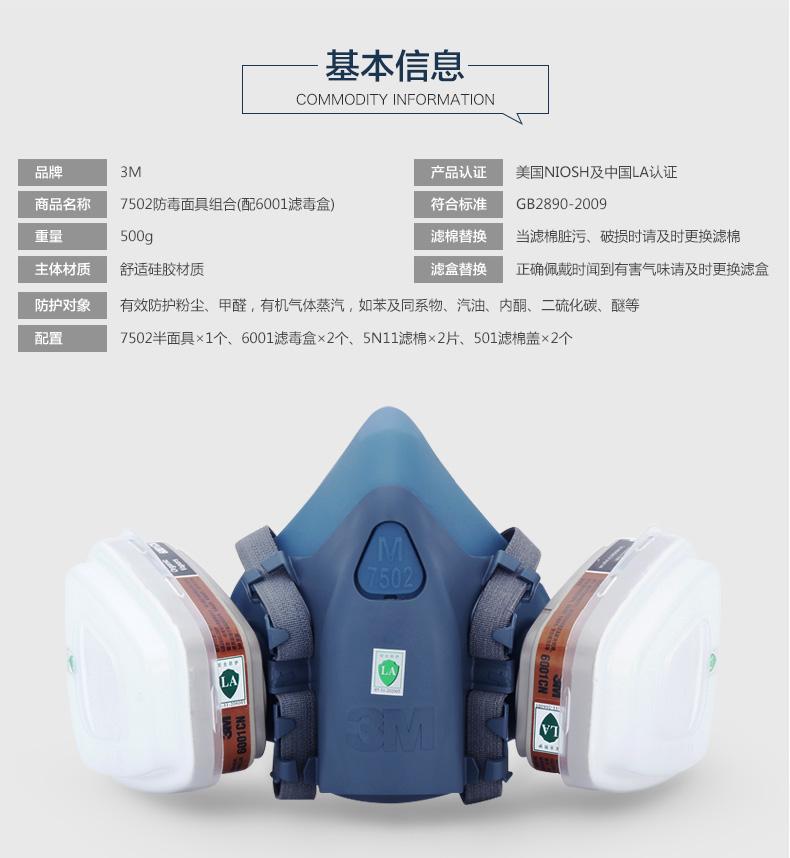 Máscara de gas 3M 7502, máscara de gas industrial, máscara de pintura en aerosol, polvo, pesticidas químicos, niebla de aerosol, PM2.5