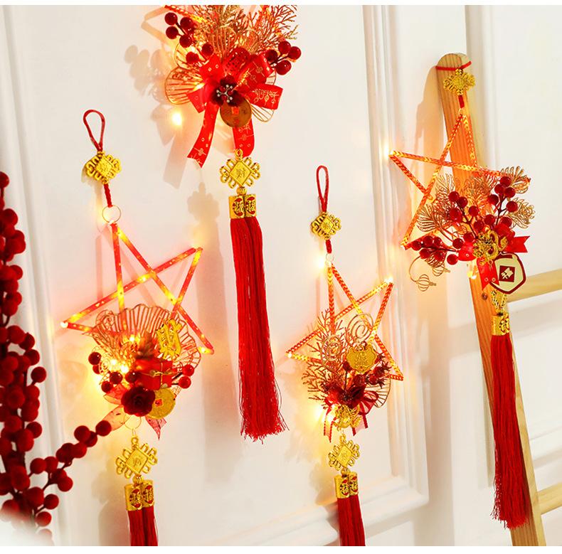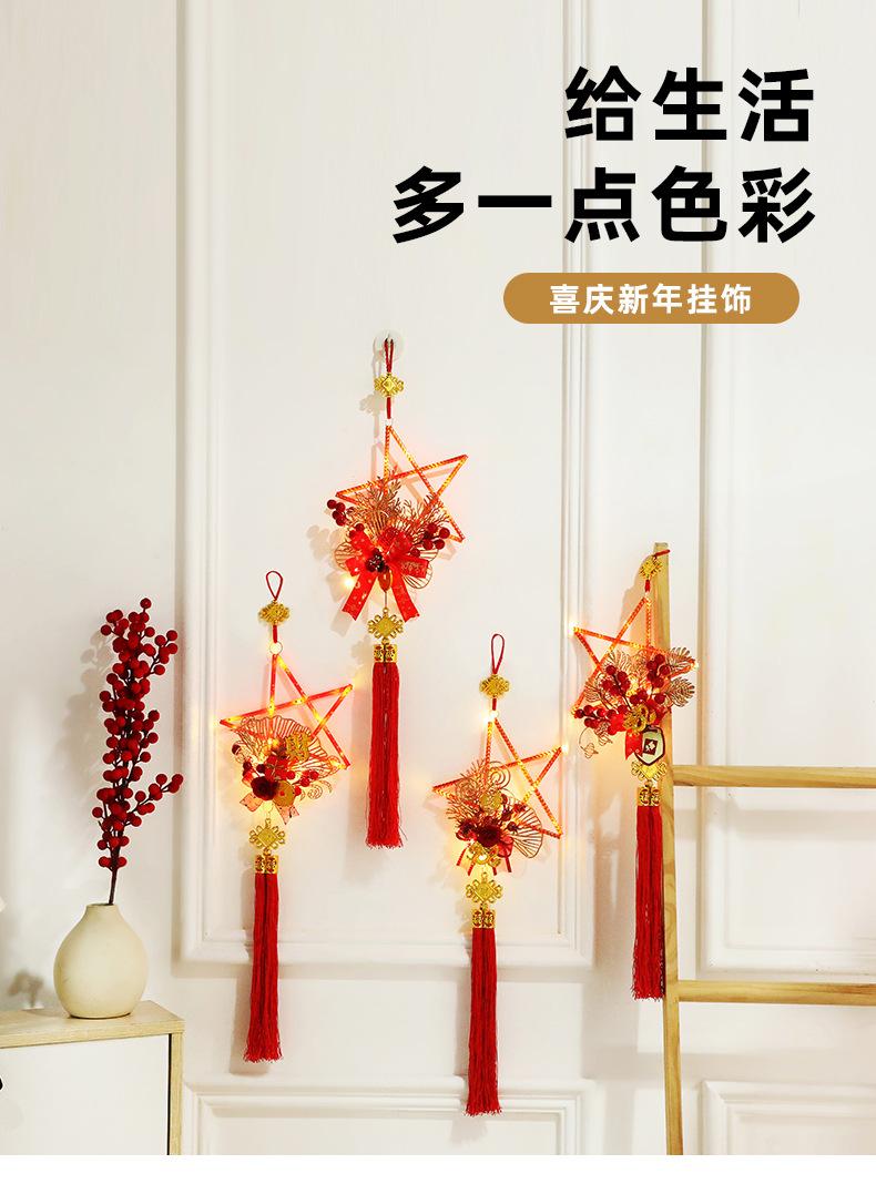 Nuevo año luminoso colgante de borla de estrella de cinco puntas Suministros creativos para el Festival de Primavera accesorios de diseño ambiente anual pared colgante de puerta