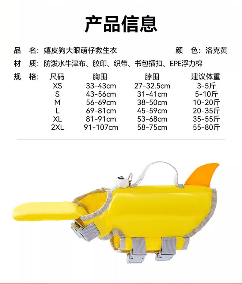 Verano Perro Ojos Grandes Moe Niño Natación Chalecos Salvavidas de Gran Flotabilidad Mascota Traje de Baño de Tela Oxford Impermeable de Secado Rápido Ropa para Perro