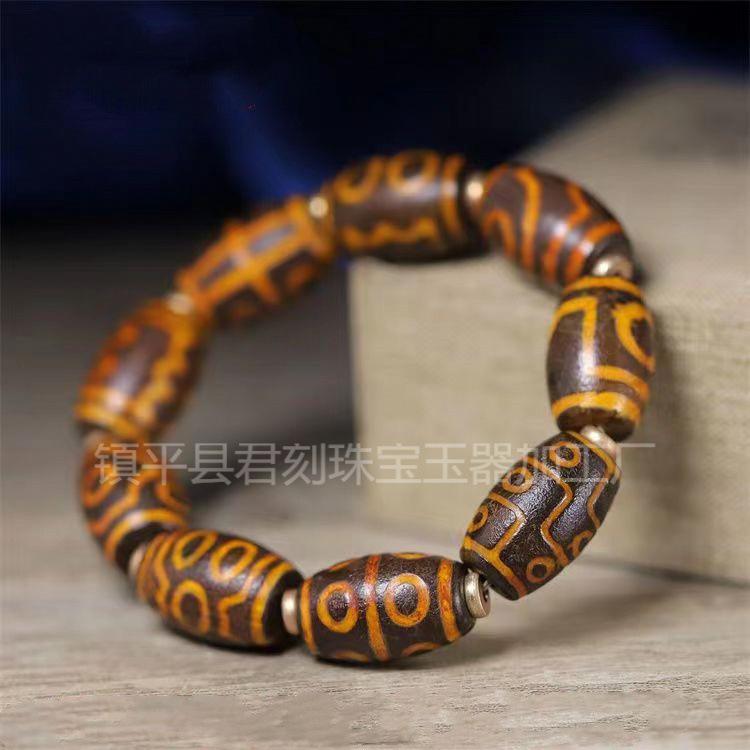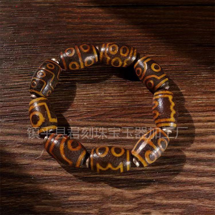 [Nombre del artículo] Pulsera de cuentas Dzi de ágata antigua de un ojo y nueve ojos, retrato familiar