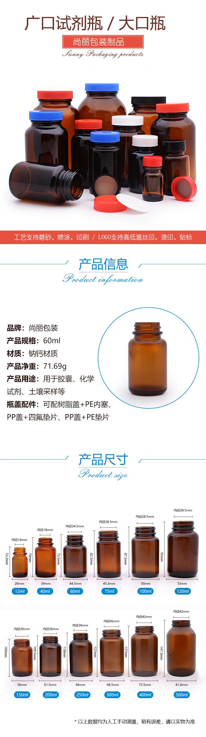 Compra Botella de vidrio de boca ancha marrón de 60 ml, botella de reactivo de boca grande marrón, cápsulas, tabletas de salud en polvo, botella de tierra al por mayor en Joom.pro