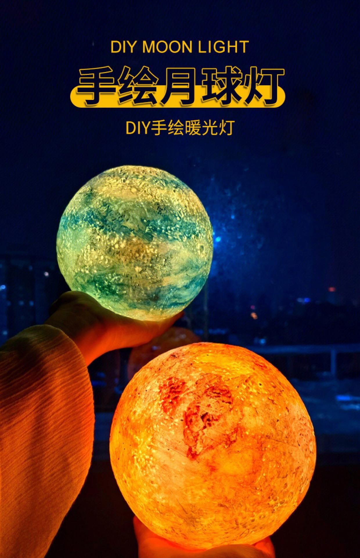 Luz de luna pintada a mano para niños, bricolaje, creativo, hecho a mano, grafiti pintado, bolsa de material, luz de noche luminosa, adornos, juguetes