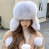 Gorro de invierno cálido gorro de piel de zorro estilo coreano gorro de invierno de felpa moderno a prueba de frío cálido orejeras de piel de zorro