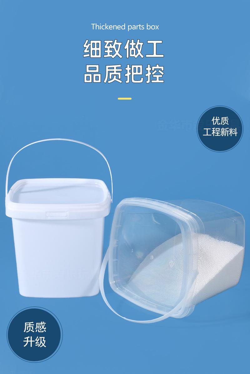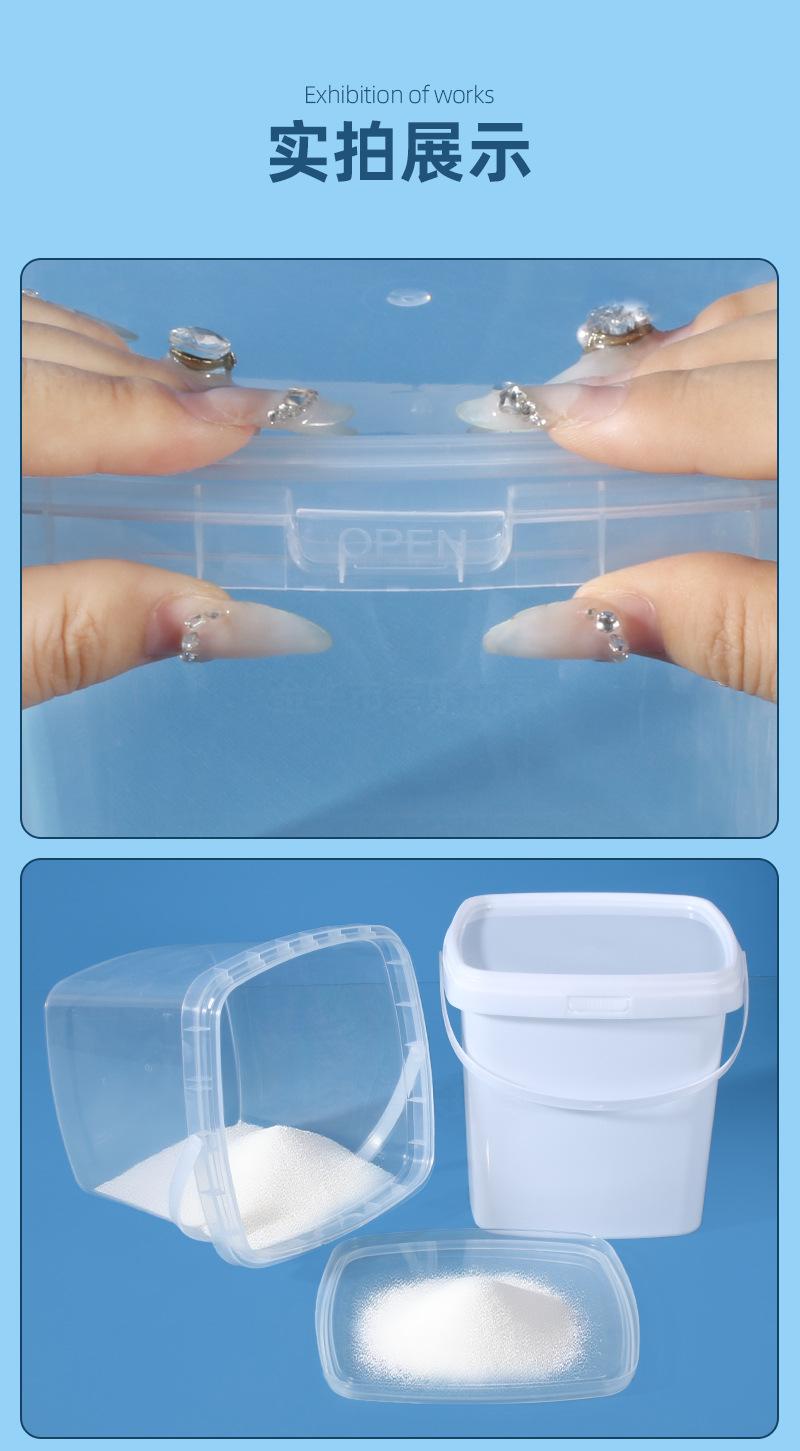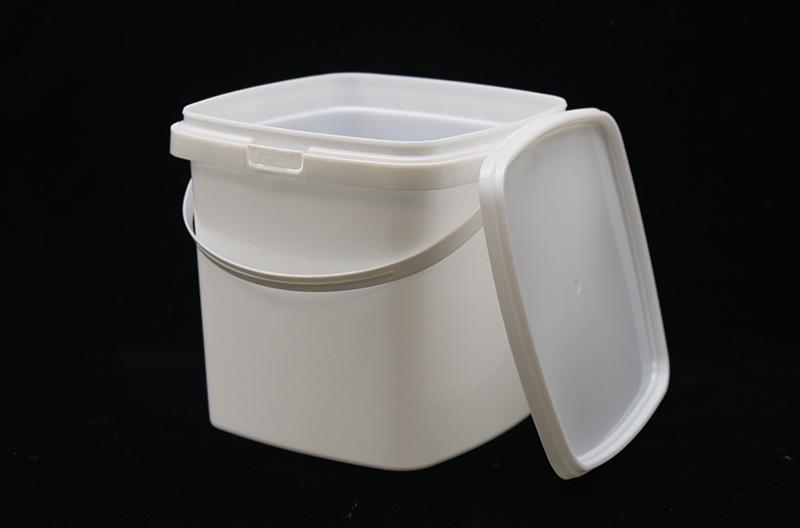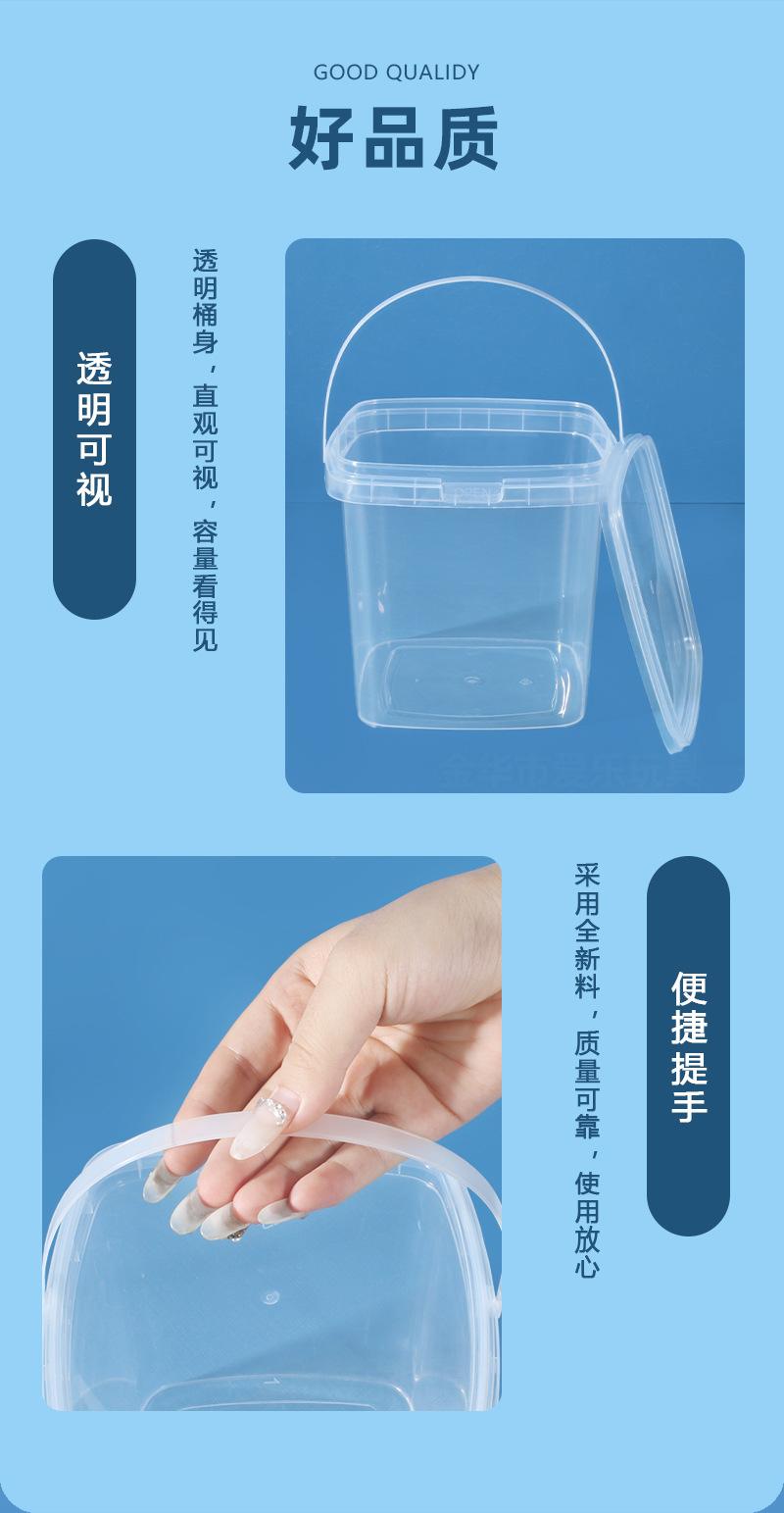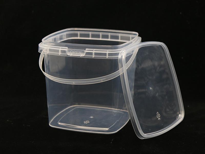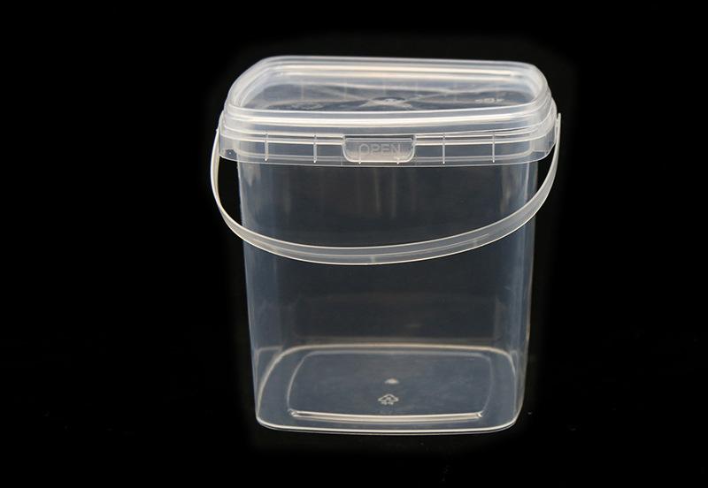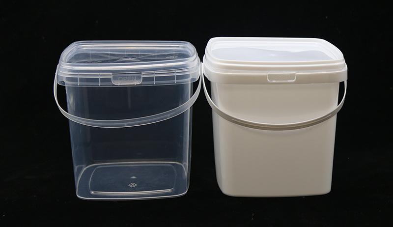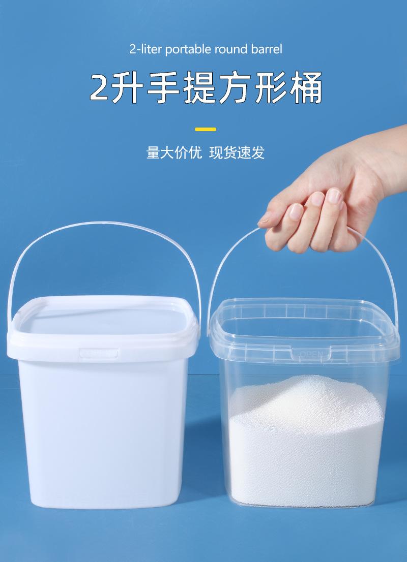 Cubo cuadrado de 2L al por mayor, cubo de plástico transparente, cubo de embalaje con tapa, cubo redondo, cubo pequeño, cubo para productos químicos, PP blanco