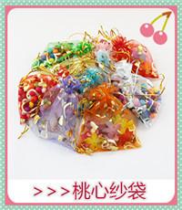Suministro de fabricantes, ventas en consignación, bolsas de gasa para regalos, bolsas de gasa perlada, bolsas de gasa de malla transparente, venta al por mayor al contado, bolsas de gasa con forma de corazón de durazno