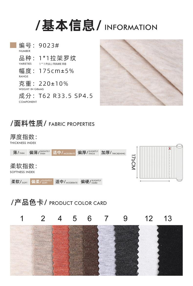 1*1 tejido elástico reciclado acanalado de punto casual de doble cara de alta elasticidad para primavera y otoño, camiseta, ropa de mujer