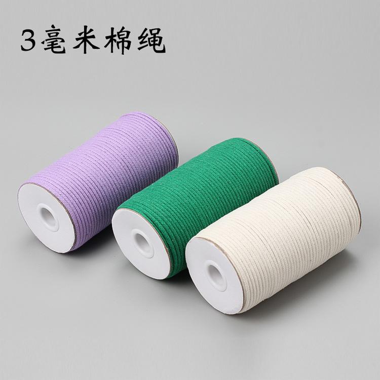 Cuerda de algodón colorida de 3 mm Tapiz hecho a mano Tejido DIY Caja de regalo Cuerda de algodón decorativa Cuerda para atar Cuerda para etiqueta 62 m