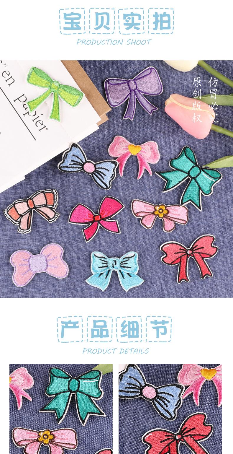 Etiqueta de bordado por computadora, insignia de lazo de dibujos animados, accesorios de ropa, parche, decoración de abrigos y sombreros, pasta de bordado autoadhesiva, pasta de tela