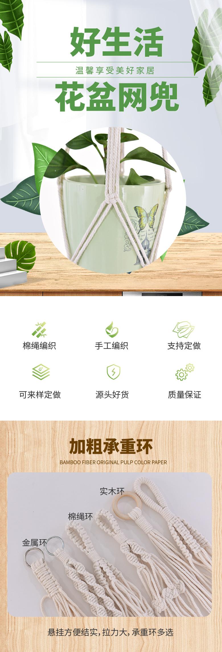 Cesta colgante creativa para macetas de jardinería transfronterizas, cesta colgante para flores, cesta para interiores y exteriores, bolsa de red de cuerda de algodón y lino tejida a mano