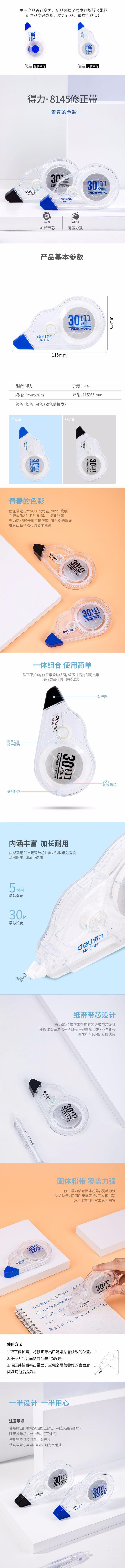 Deli 8145 Cinta Correctora Estudiante Cinta Correctora de Gran Capacidad Cinta Correctora Cinta Correctora Cinta Correctora 30 m Paquete