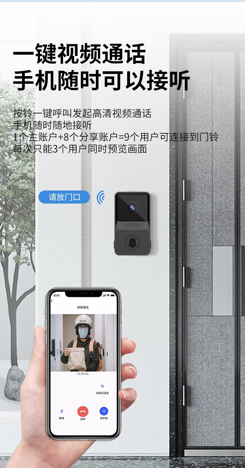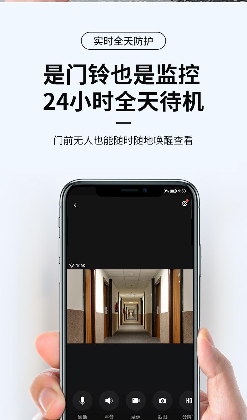 Método de activación: Activación por botón de timbre, activación por detección de cuerpo humano PIR, activación activa por teléfono móvil