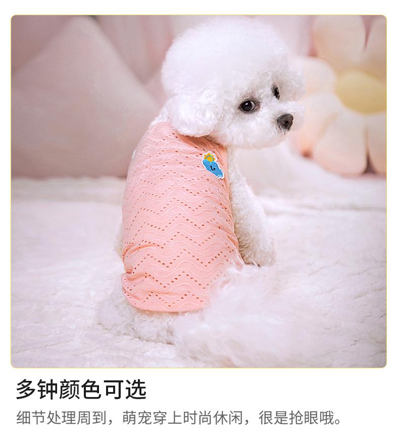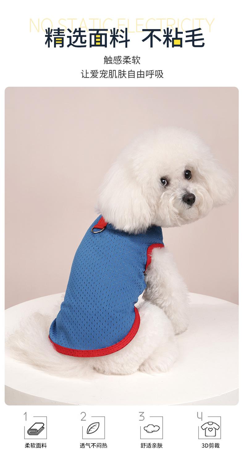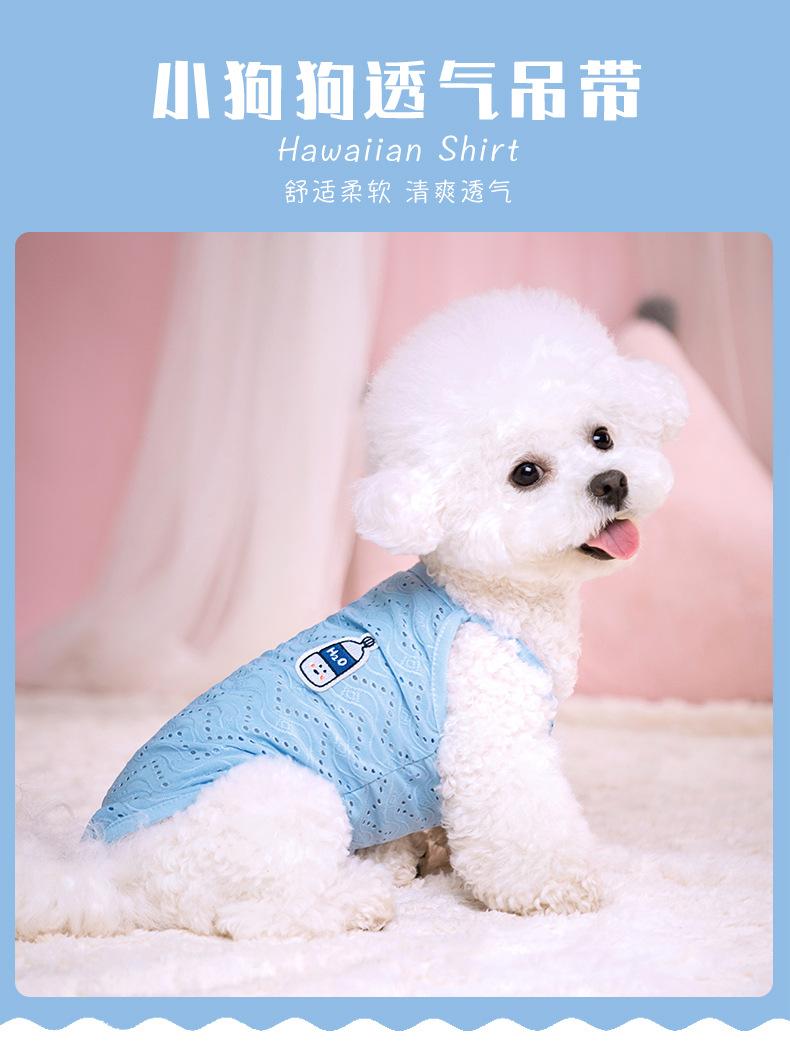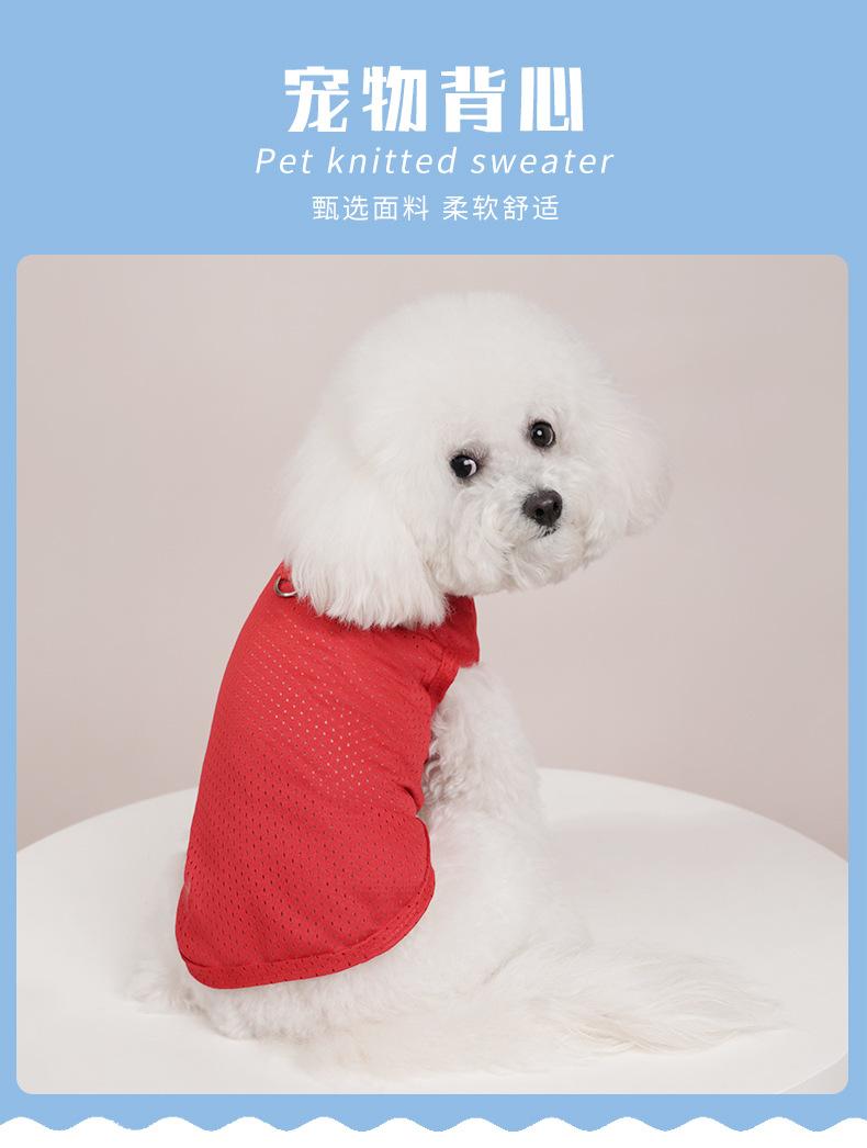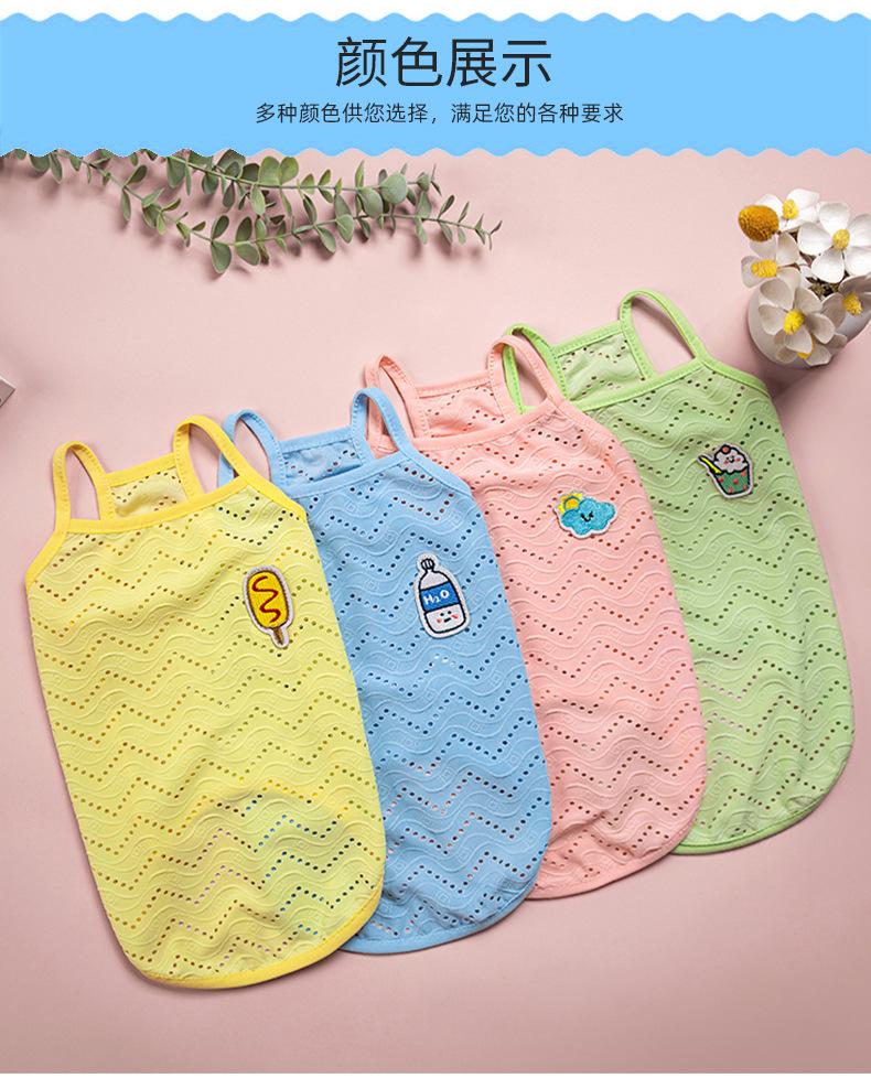Ropa para perro mascota camiseta primavera y verano delgada simple tirantes malla transpirable hueca chaleco bordado ropa para mascota al por mayor