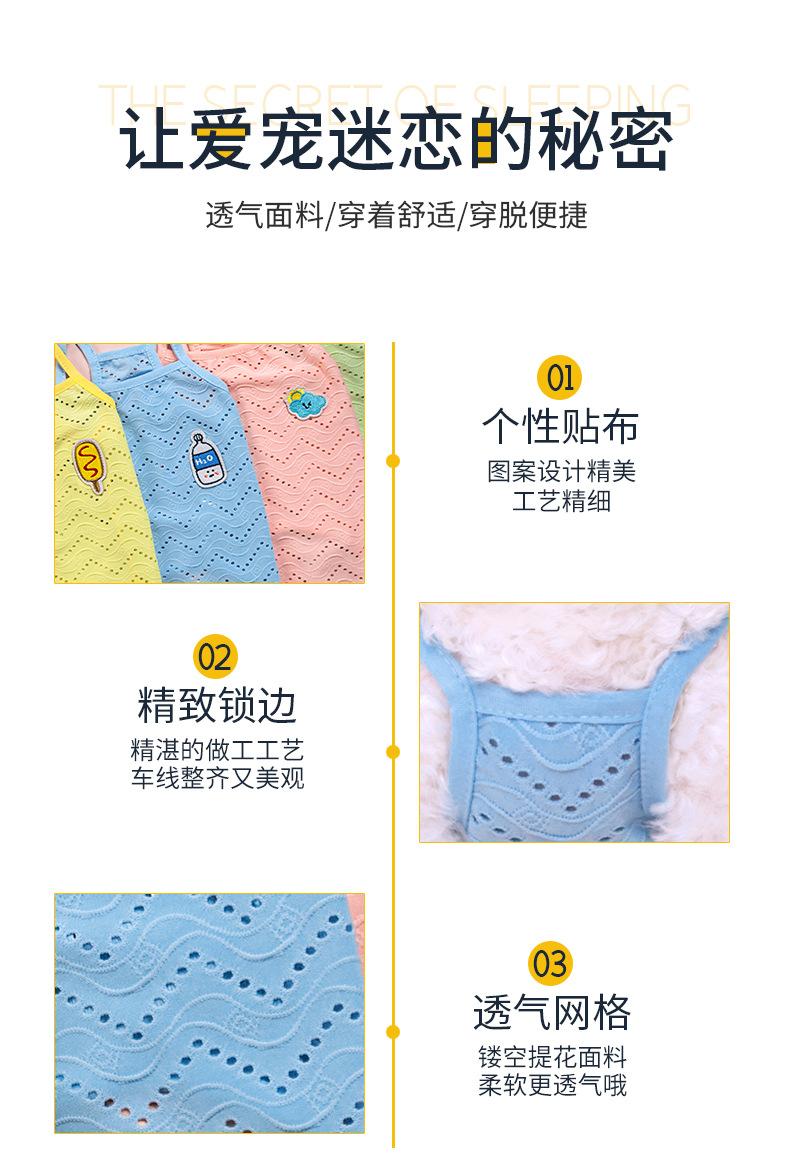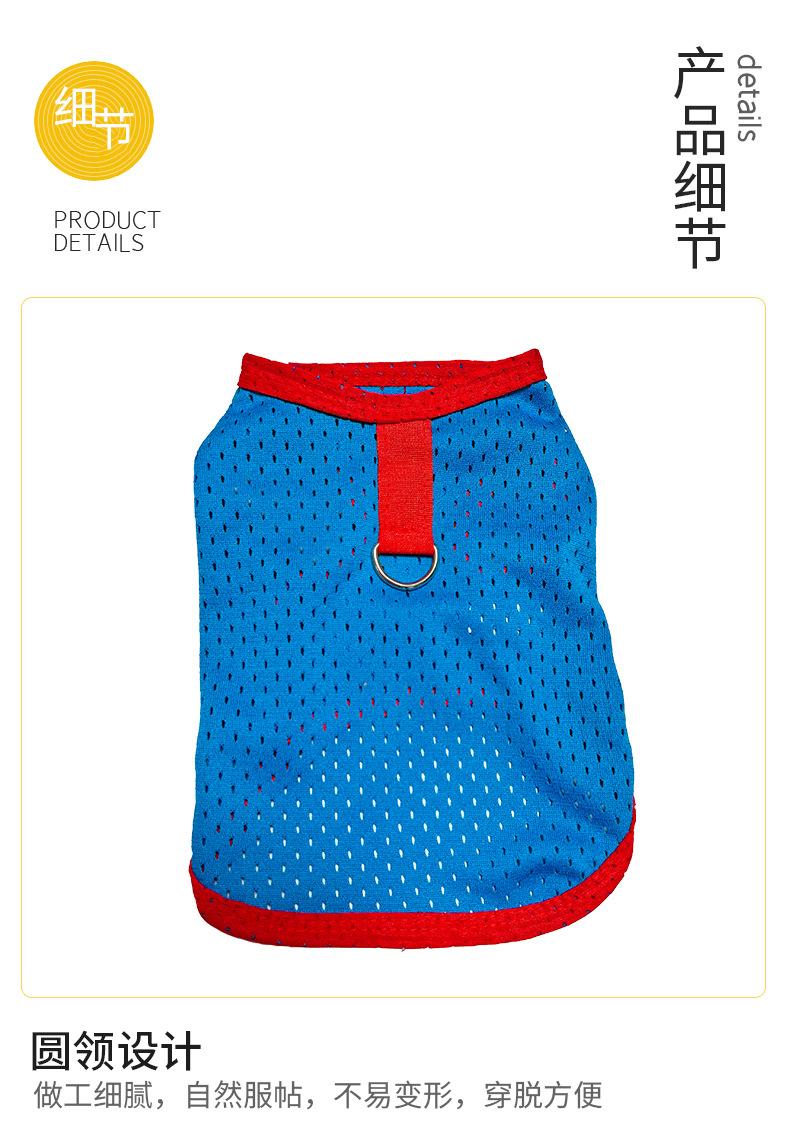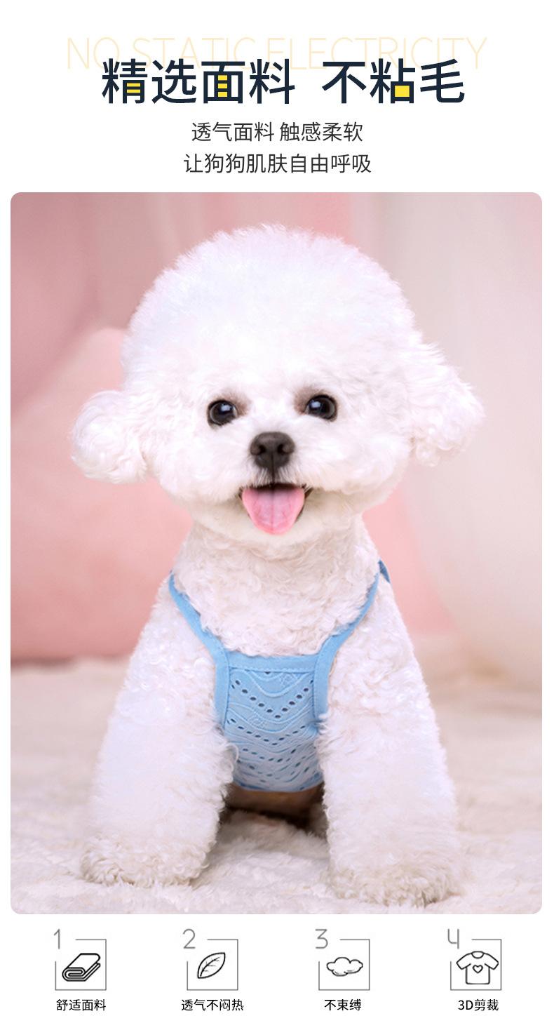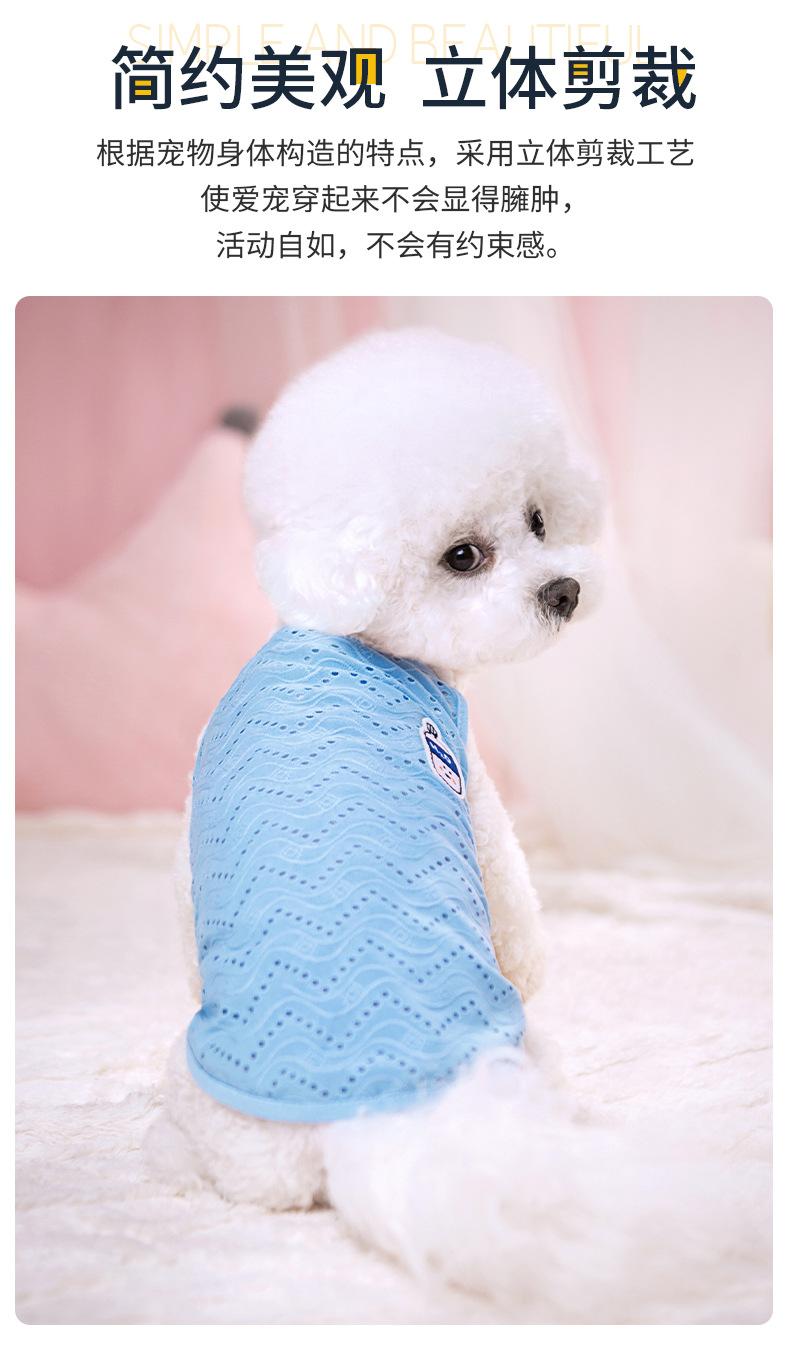 Ropa para perro mascota camiseta primavera y verano delgada simple tirantes malla transpirable hueca chaleco bordado ropa para mascota al por mayor