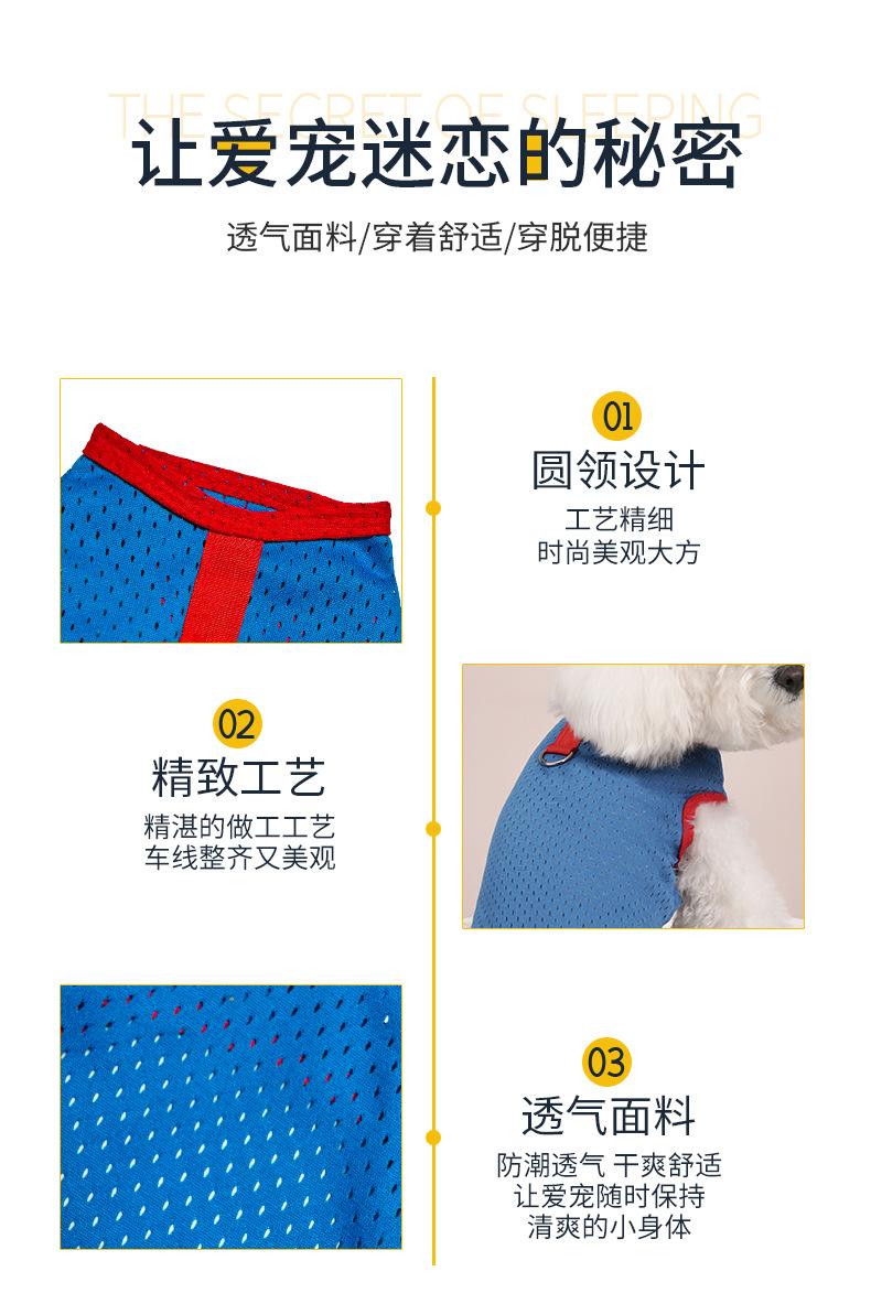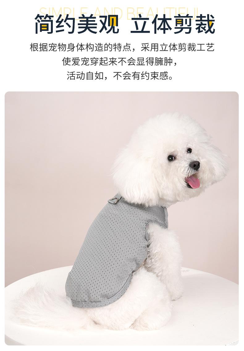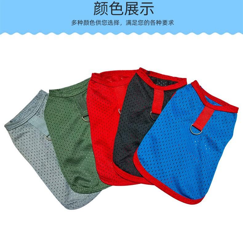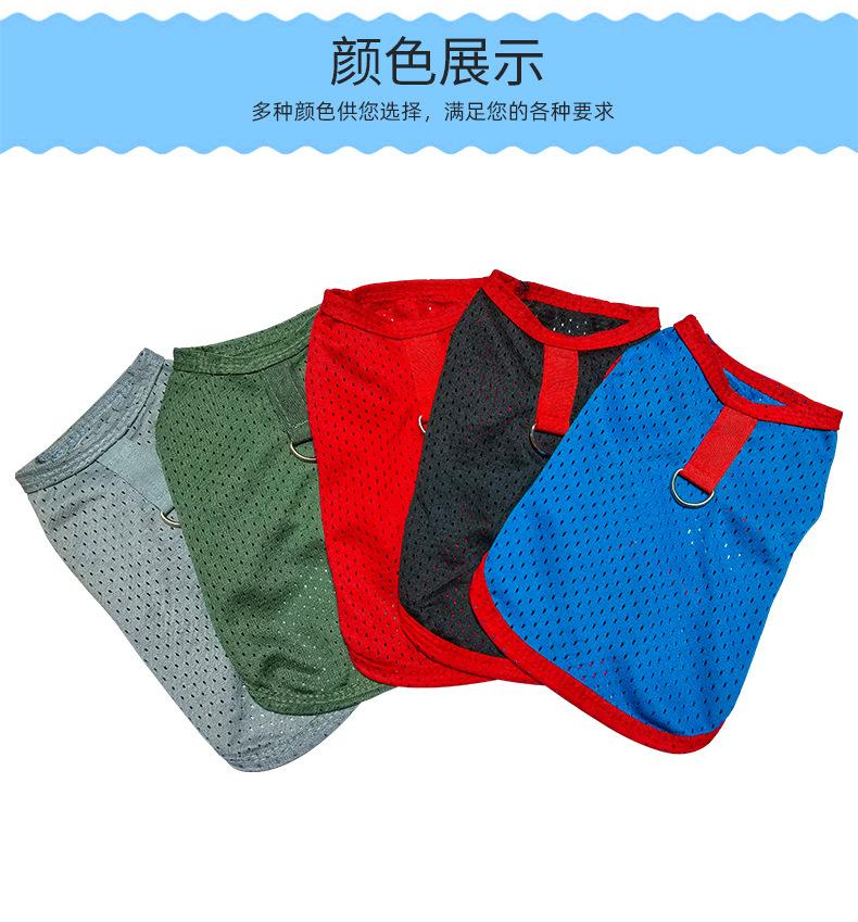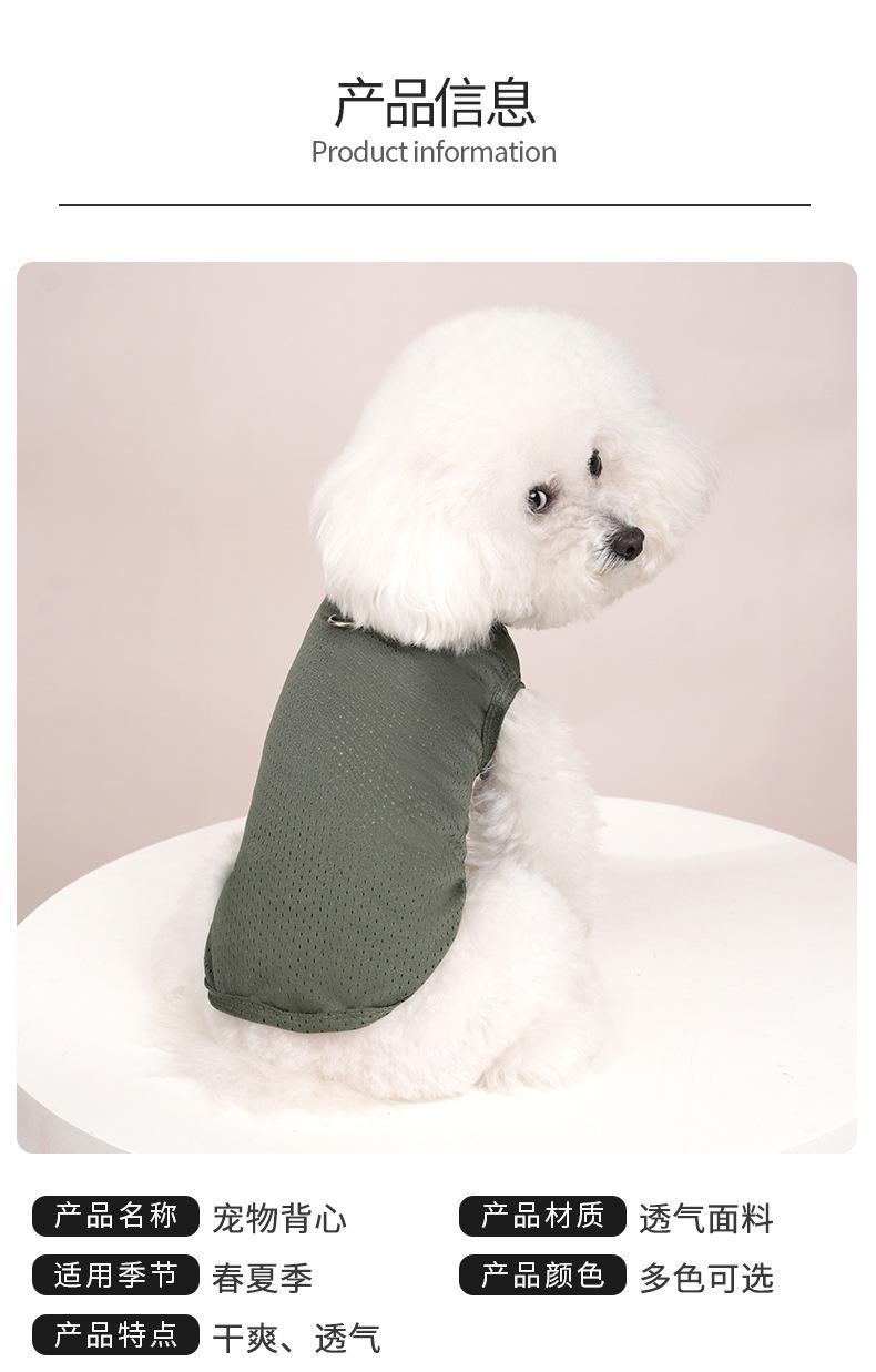 Ropa para perro mascota camiseta primavera y verano delgada simple tirantes malla transpirable hueca chaleco bordado ropa para mascota al por mayor