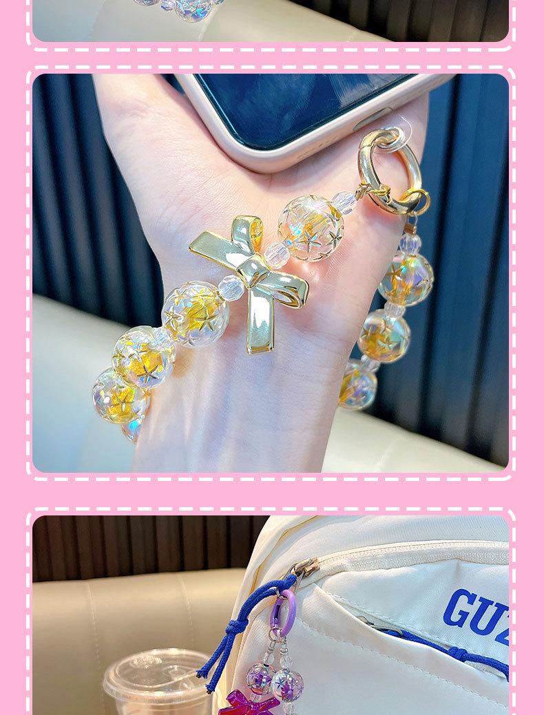 Llavero con cuentas de cristal, colgante con forma de lazo, bonito diseño, cordón para bolso, cordón para teléfono móvil, venta al por mayor
