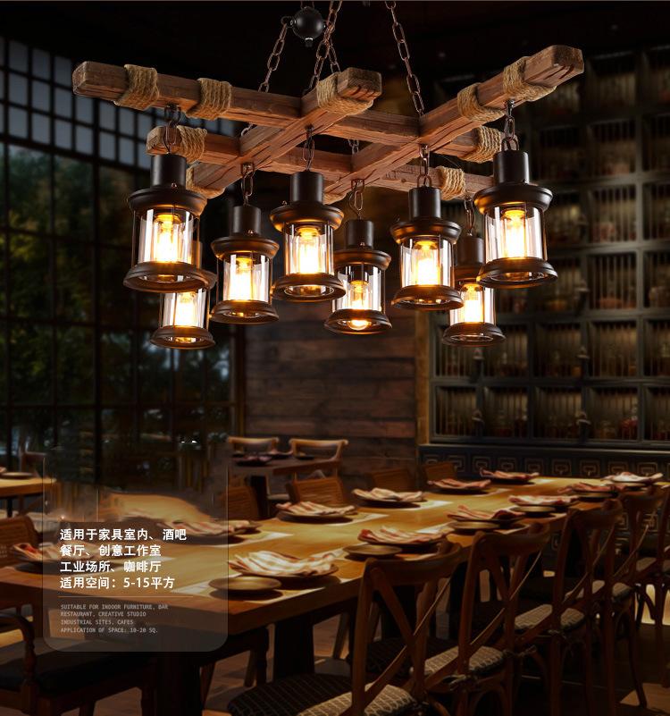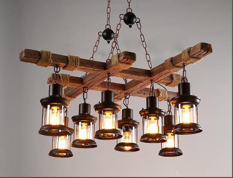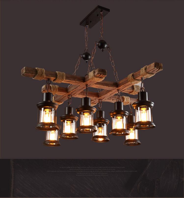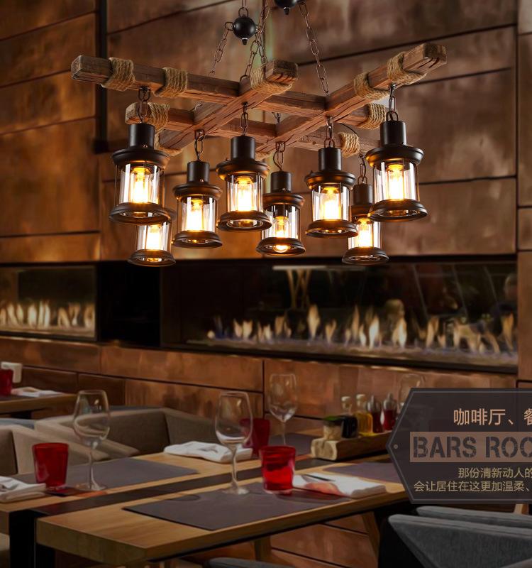 Lámpara decorativa de madera rústica americana con cuerda de cáñamo, estilo retro industrial, restaurante, sala de estar, bar temático, cibercafé, candelabro de madera