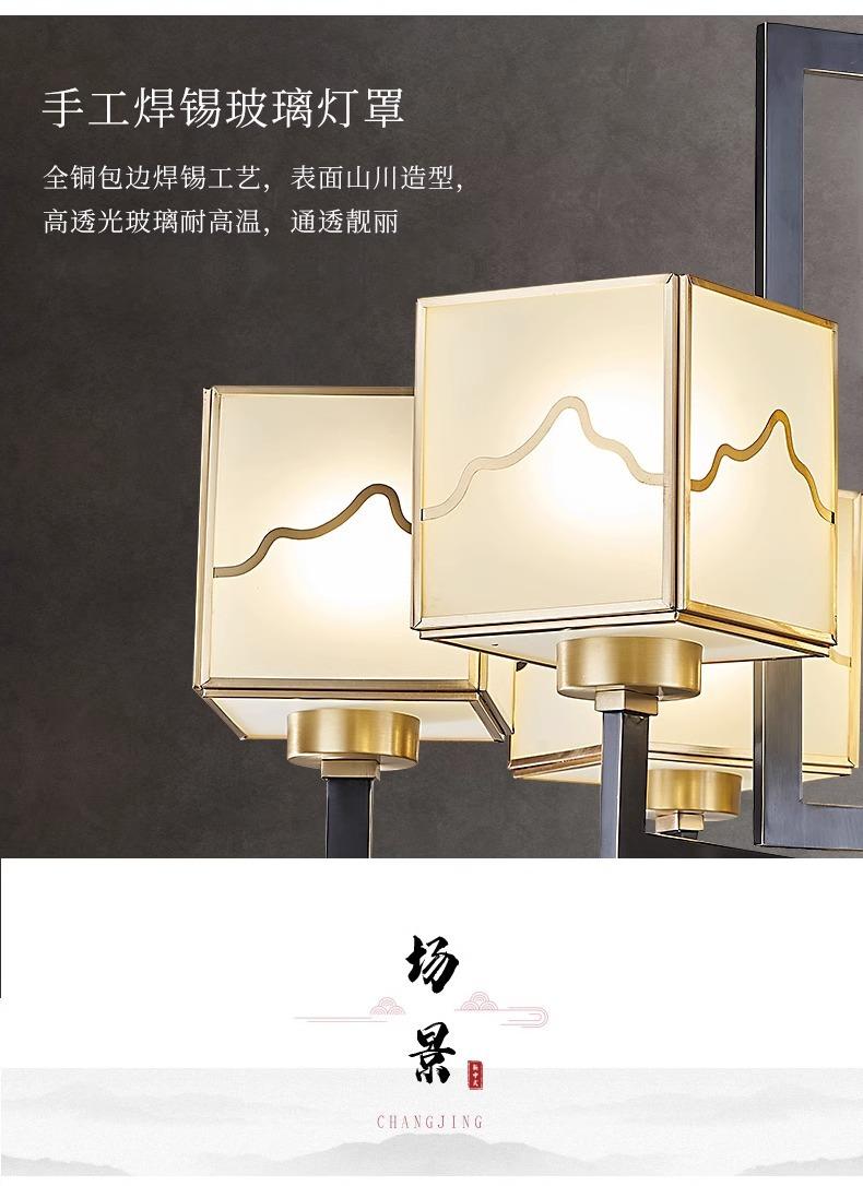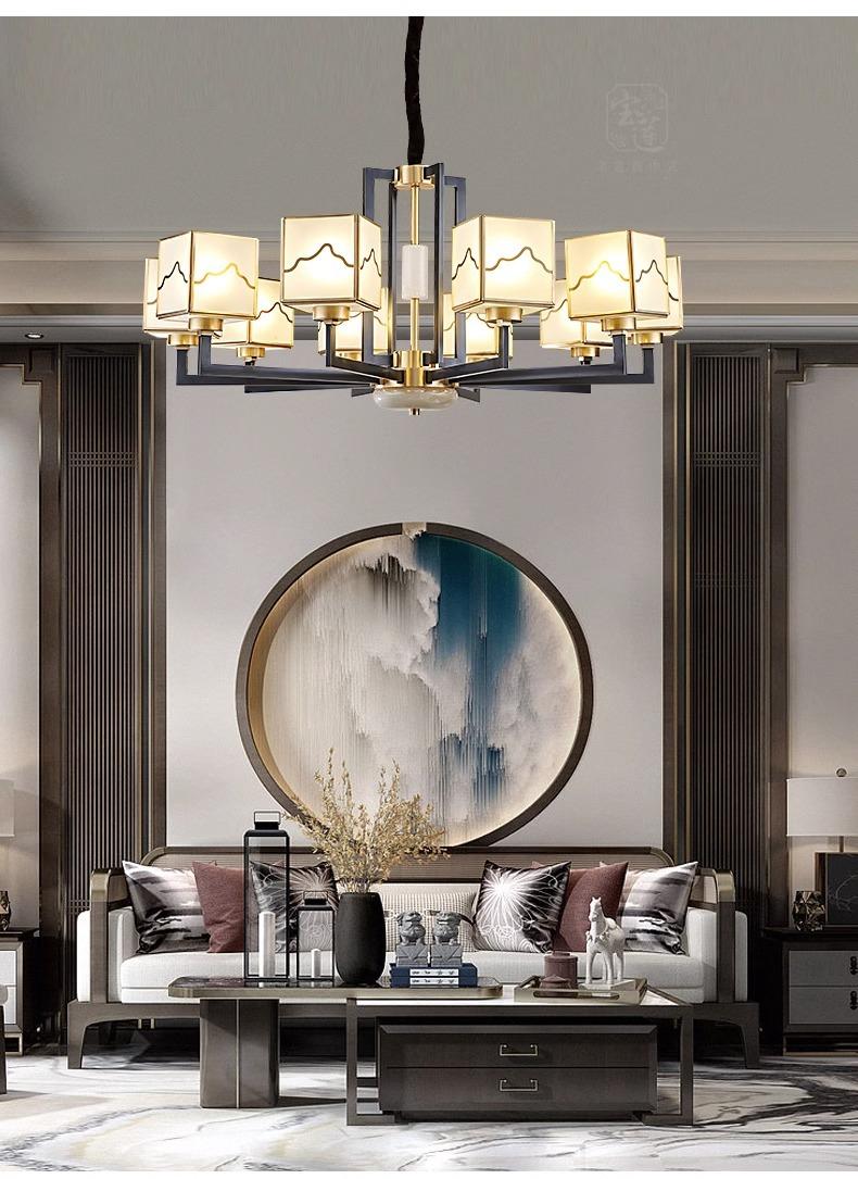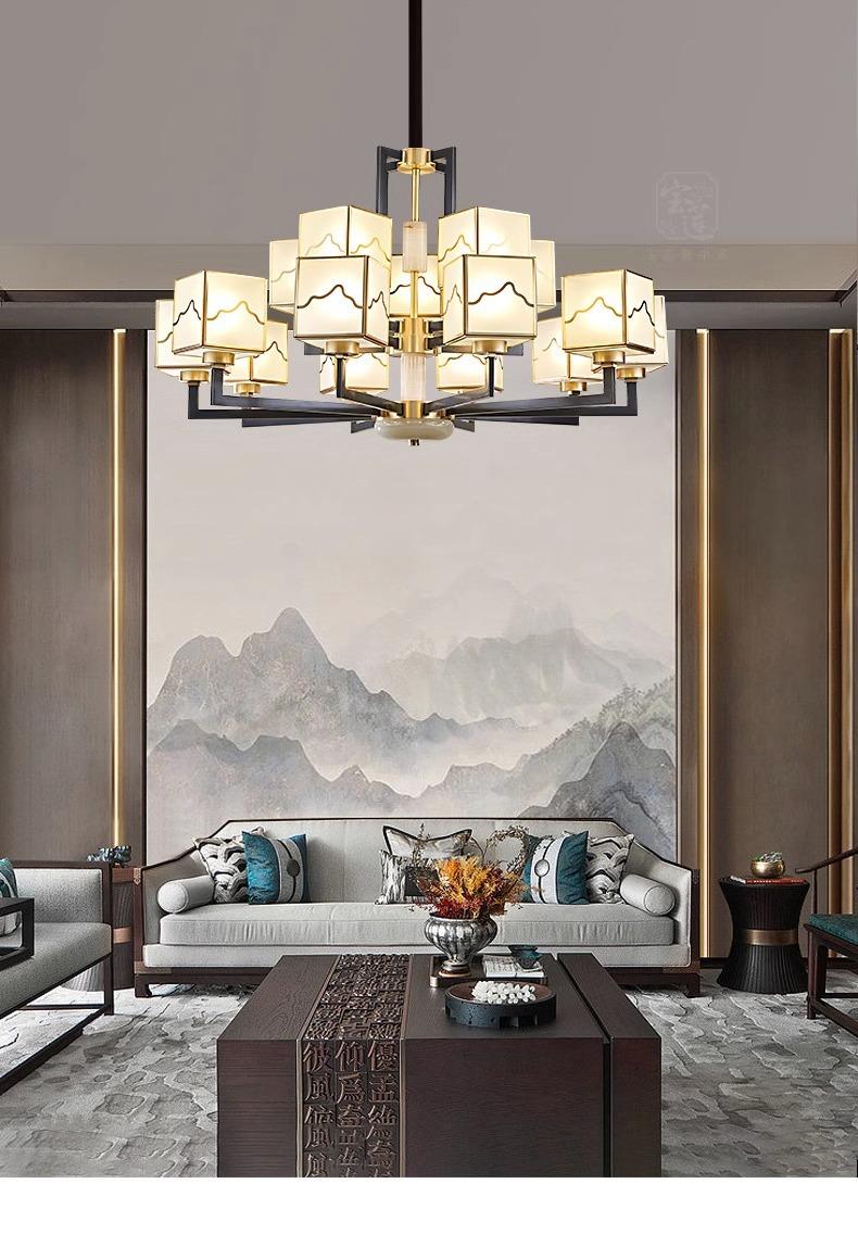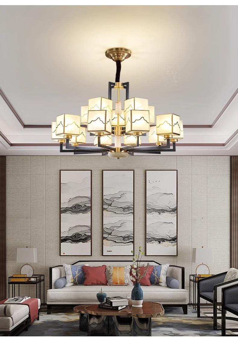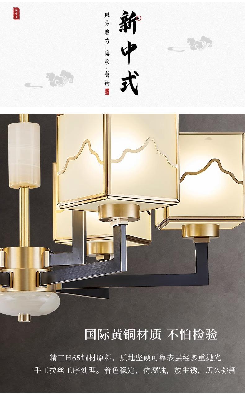 Nueva lámpara de araña de cobre de estilo chino para sala de estar, lámpara de lujo para comedor, dormitorio, moderna lámpara minimalista de estilo chino Zen Hall