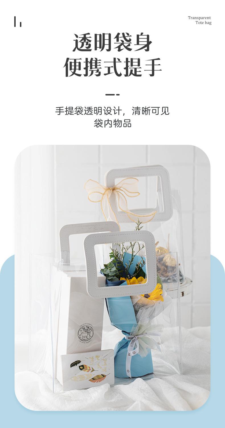 Bolsa de regalo transparente para bolso de mano, bolsa de regalo de PVC, bolsa de embalaje de plástico estilo ins para llevar a mano.