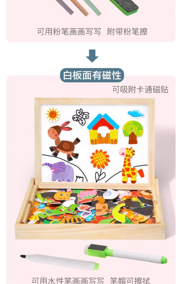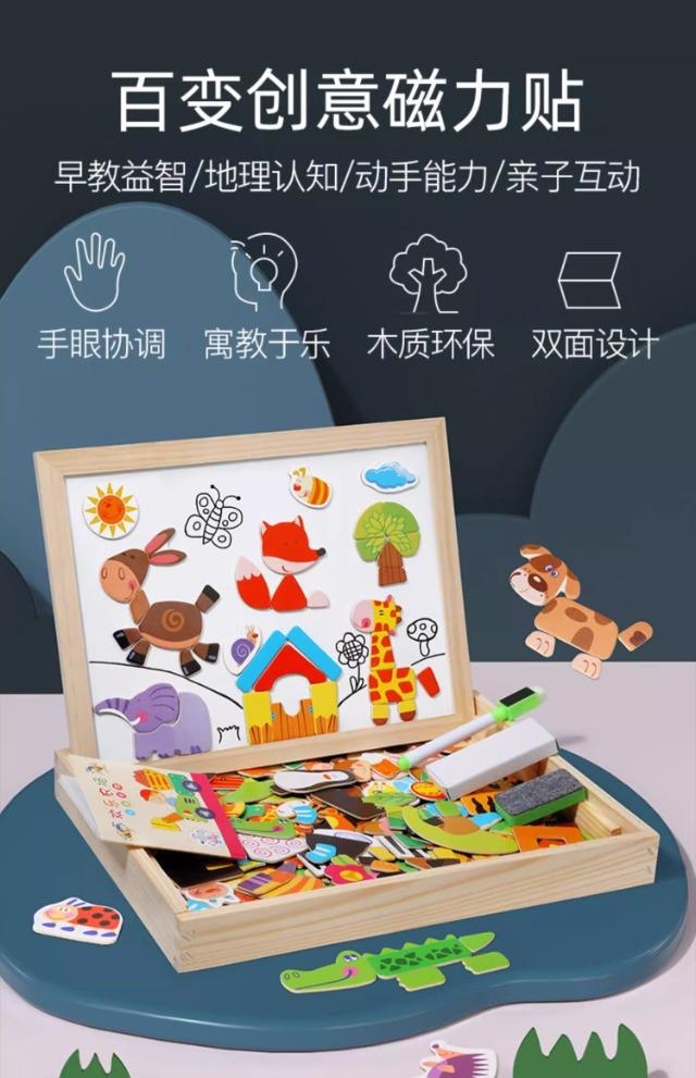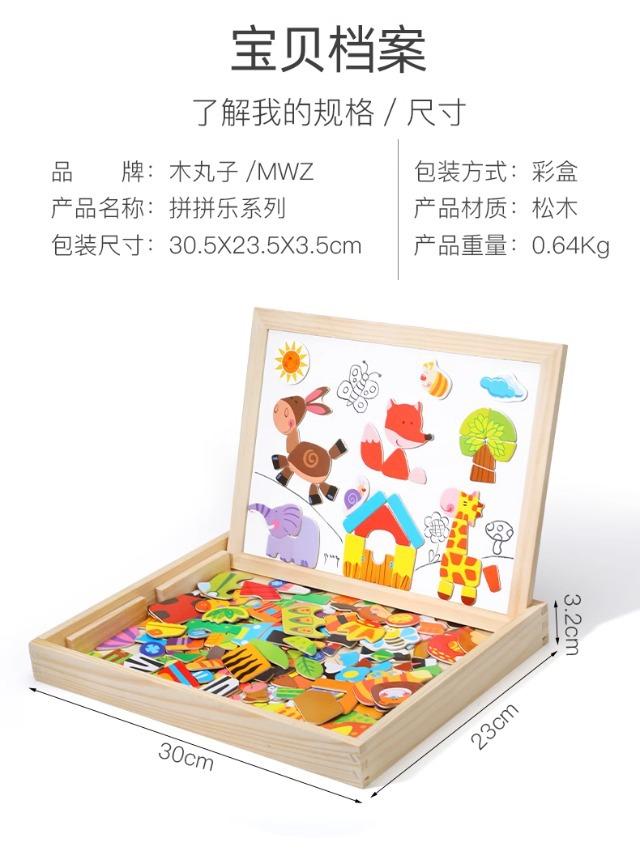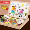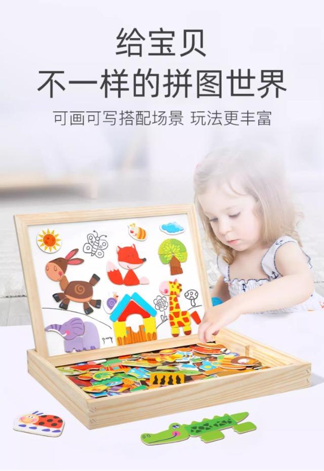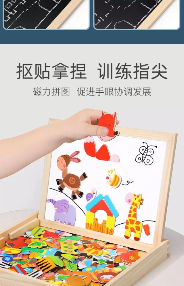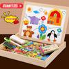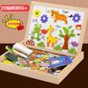 Rompecabezas infantil transfronterizo, rompecabezas magnético multifuncional de doble cara, tablero de dibujo, rompecabezas de escena de animales de madera, juguete 4-6