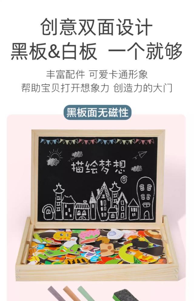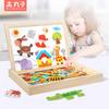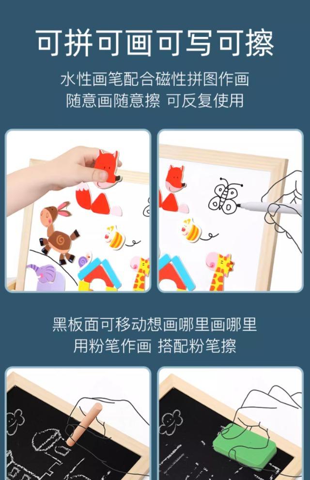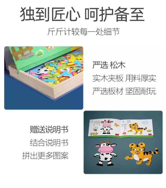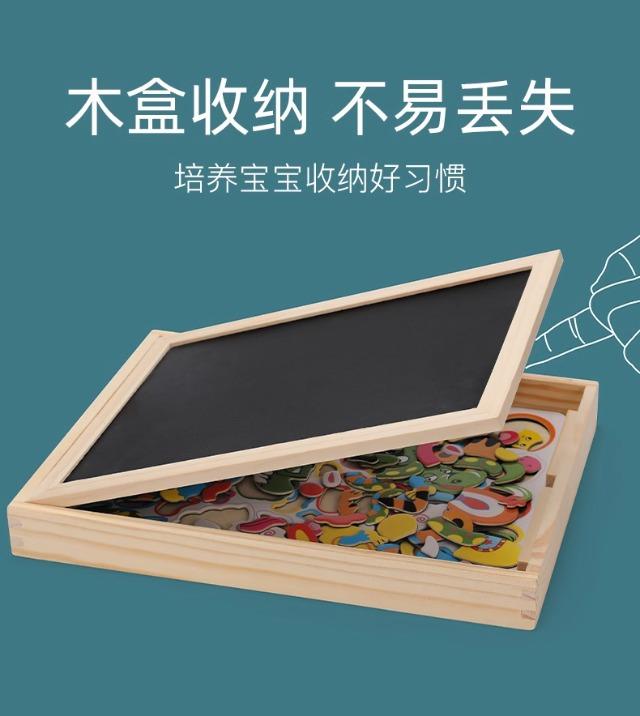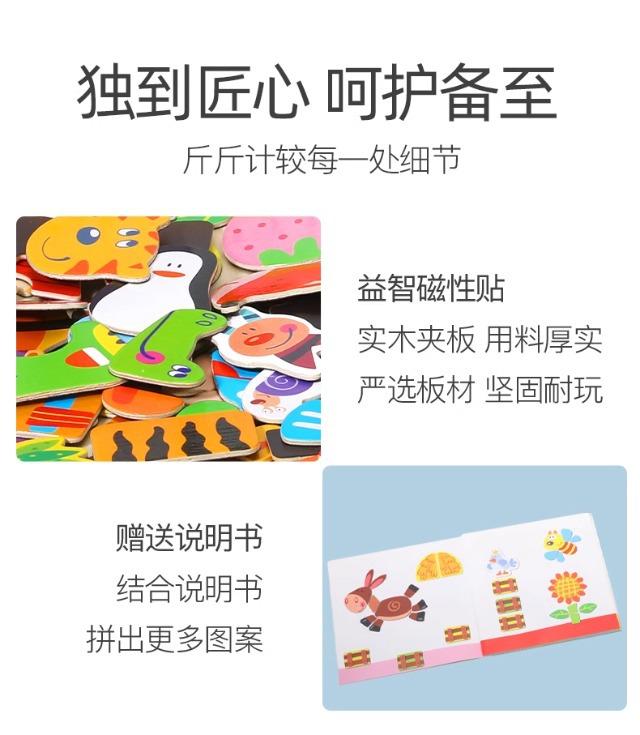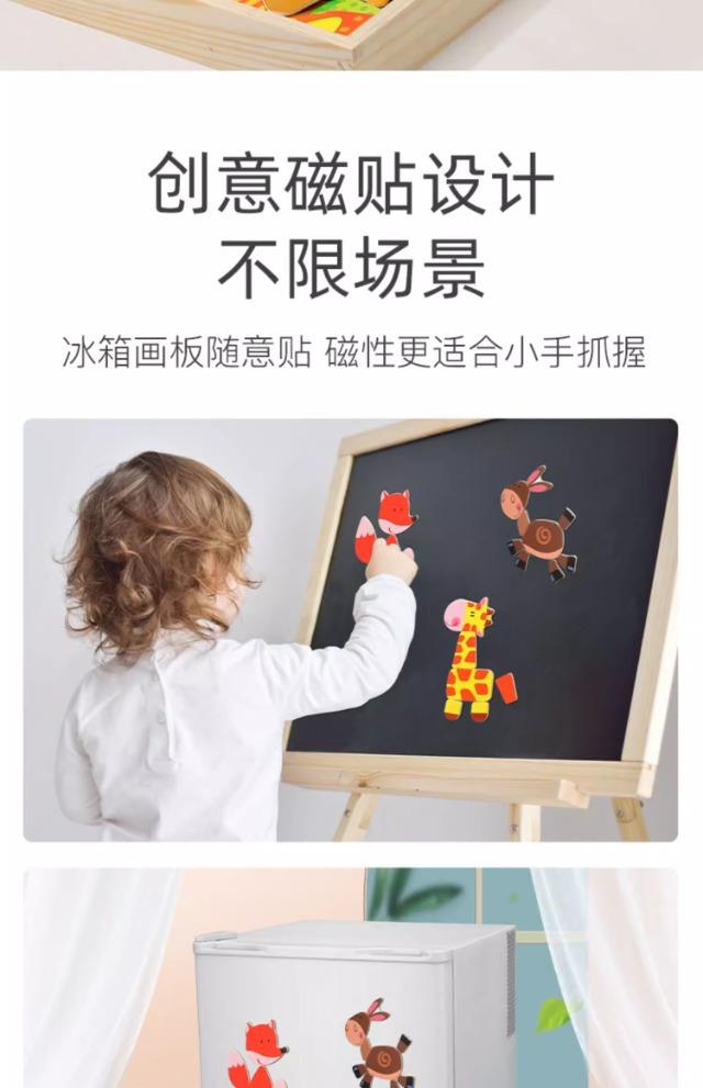 Rompecabezas infantil transfronterizo, rompecabezas magnético multifuncional de doble cara, tablero de dibujo, rompecabezas de escena de animales de madera, juguete 4-6