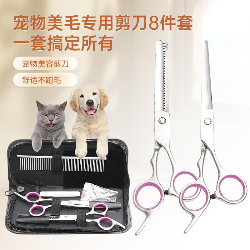 Tijeras para Pelo de Mascota de Venta Caliente Transfronteriza Juego de 8 Piezas Estilismo Canino Especial Herramientas de Afeitado y Peluquería Eliminación de Pelo