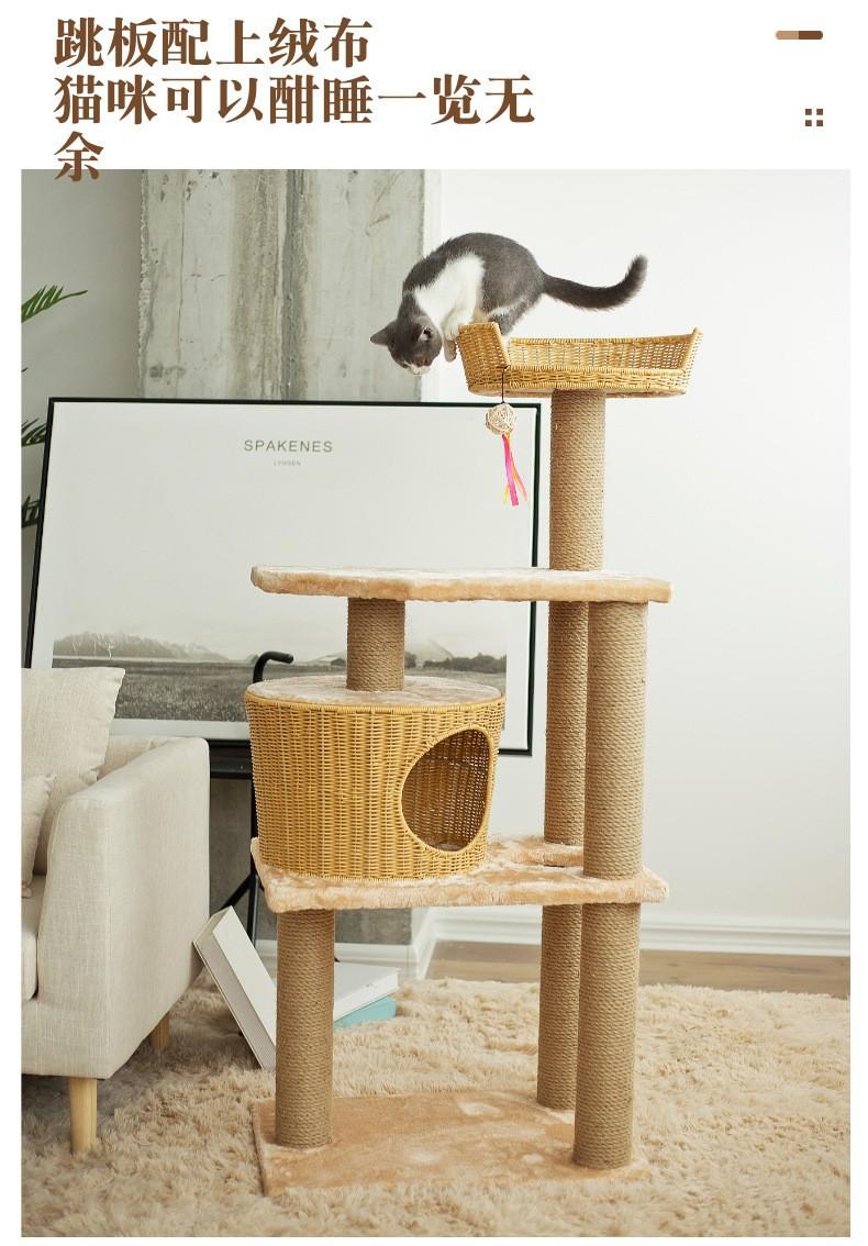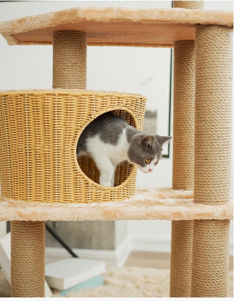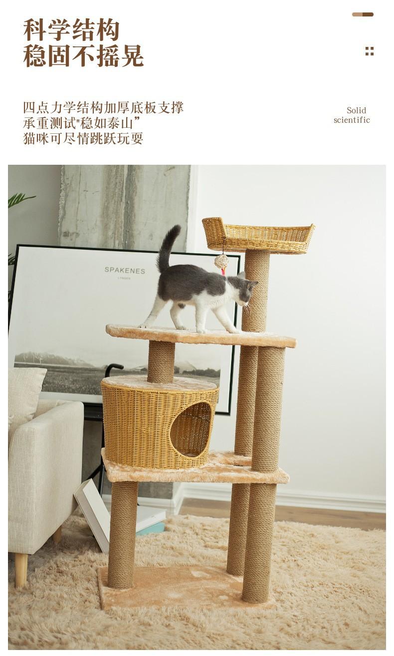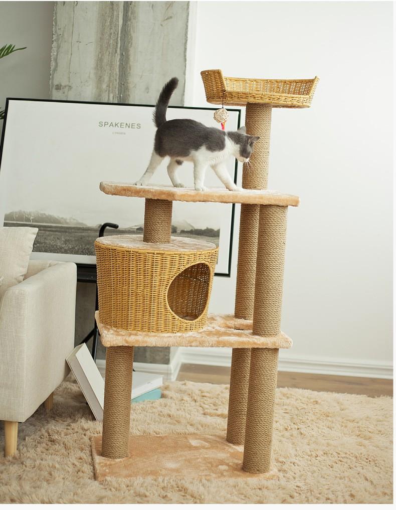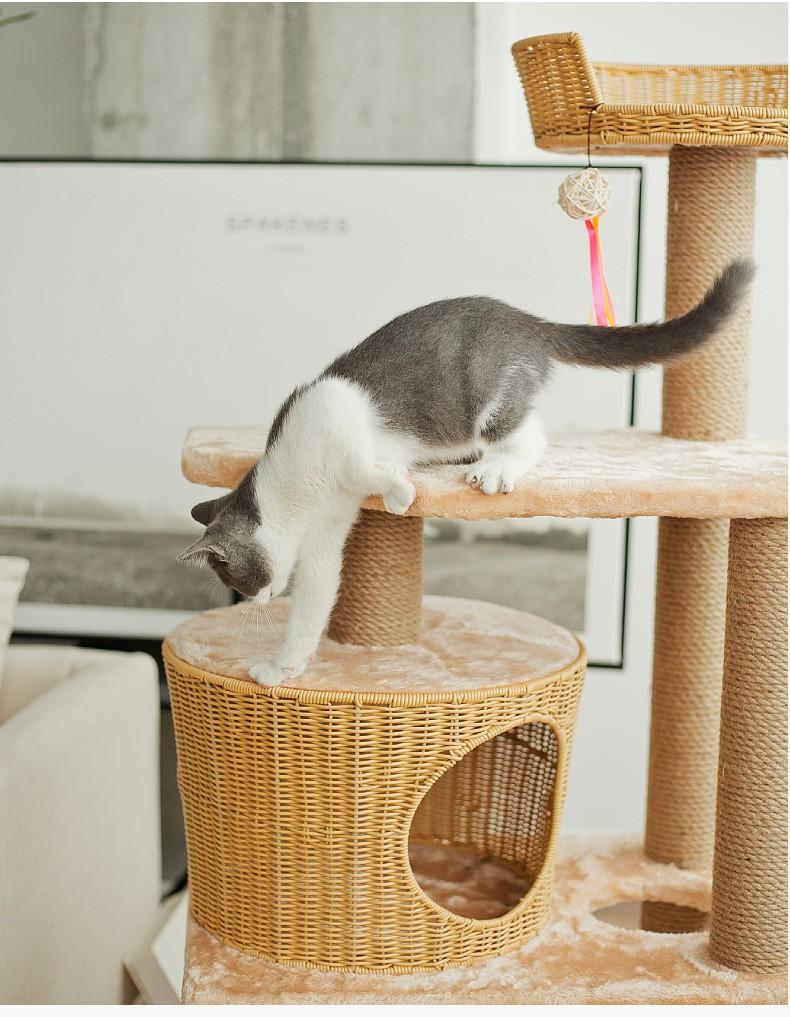 Nido para Mascotas Tejido a Mano Rascador para Gatos Villa de Ratán para Gatos Nido para Gatos Juguete para Gatos Poste de Cuerda de Cáñamo Marco para Trepar Gatos Anti-Arañazos