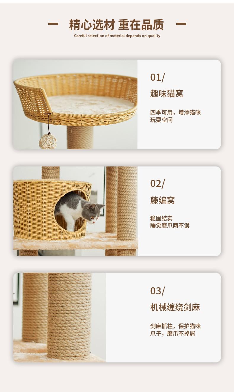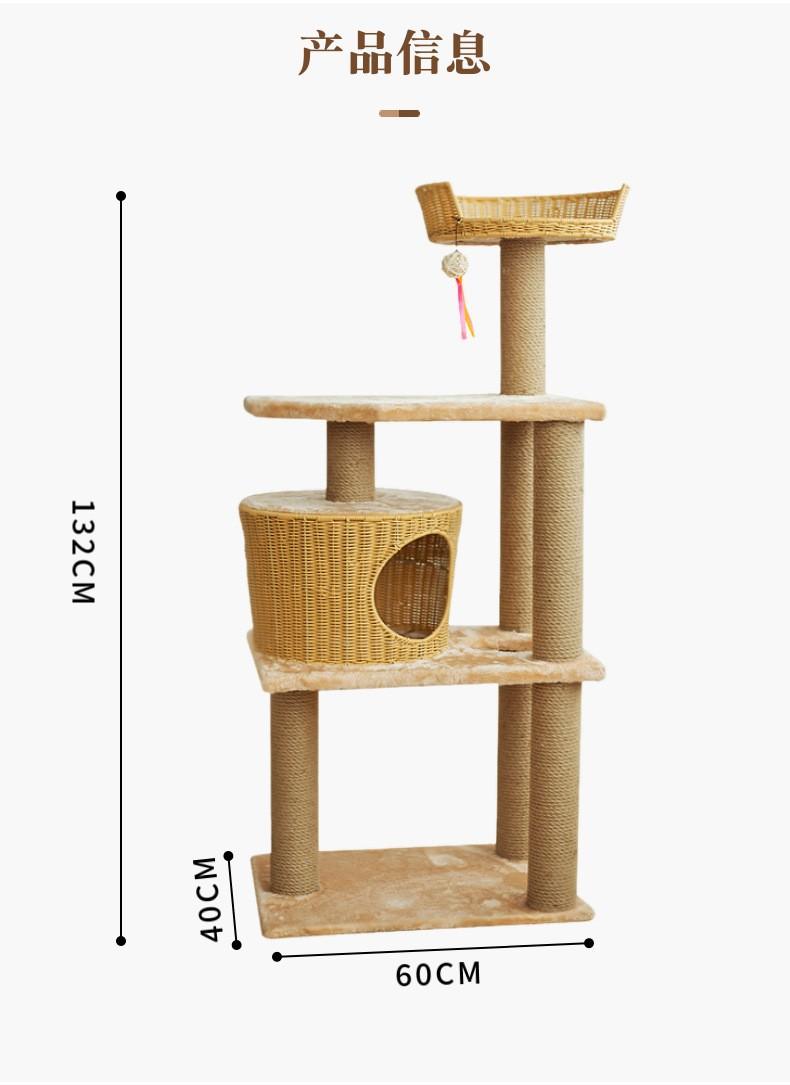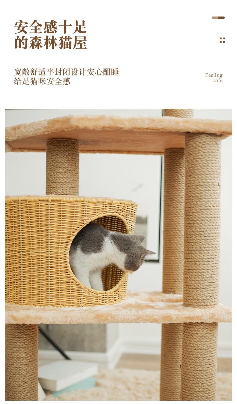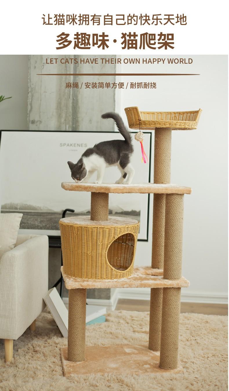Nido para Mascotas Tejido a Mano Rascador para Gatos Villa de Ratán para Gatos Nido para Gatos Juguete para Gatos Poste de Cuerda de Cáñamo Marco para Trepar Gatos Anti-Arañazos