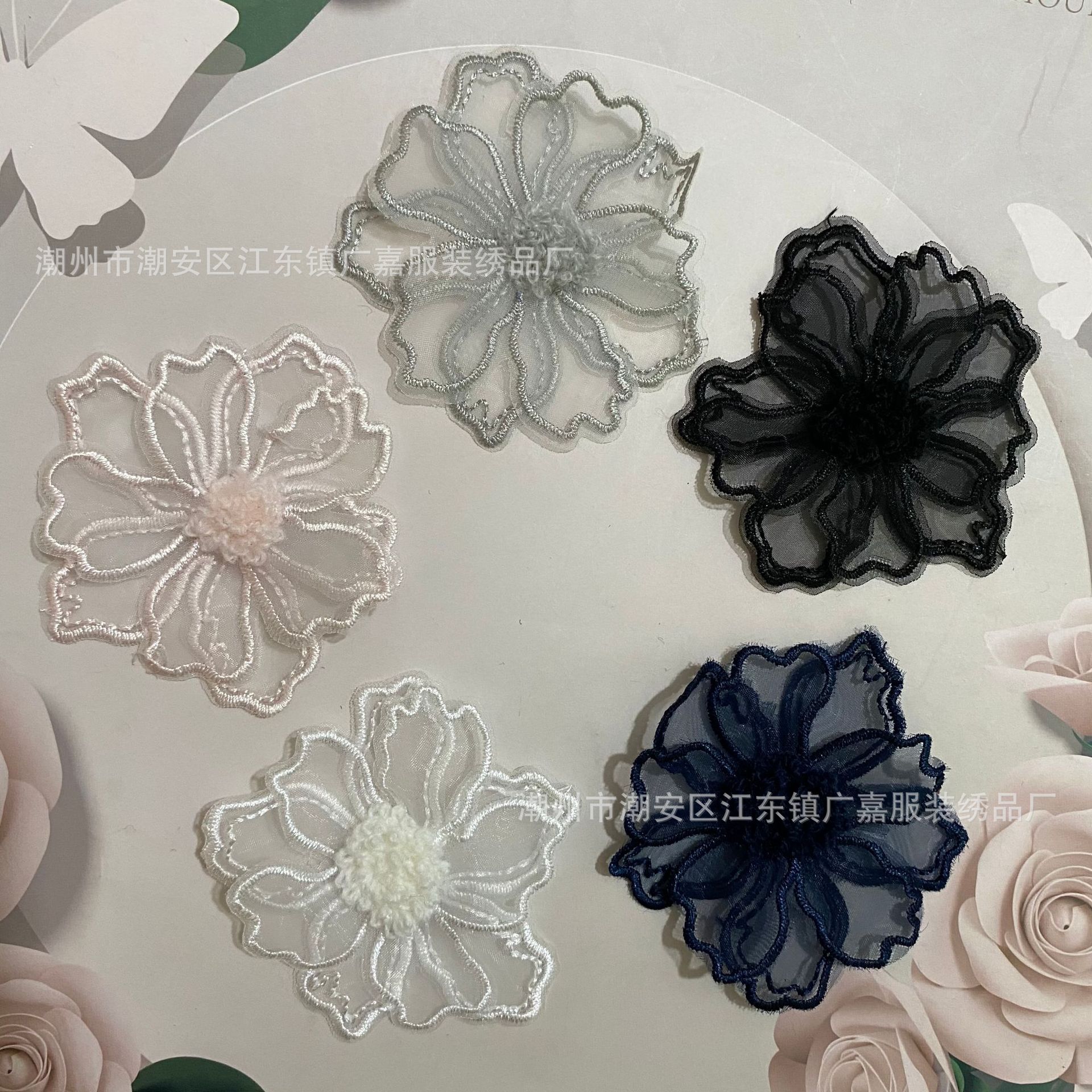 Núcleo de lana hecho a mano, encaje tridimensional, flores, bordado, bricolaje, ropa, adornos florales, accesorios de bordado para mujer, apliques para zapatos y sombreros de niños
