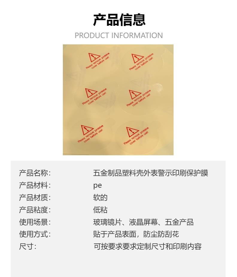 Película protectora de impresión de advertencia de apariencia de carcasa de plástico de hardware a prueba de polvo, película protectora, película resistente a arañazos, fabricantes al por mayor
