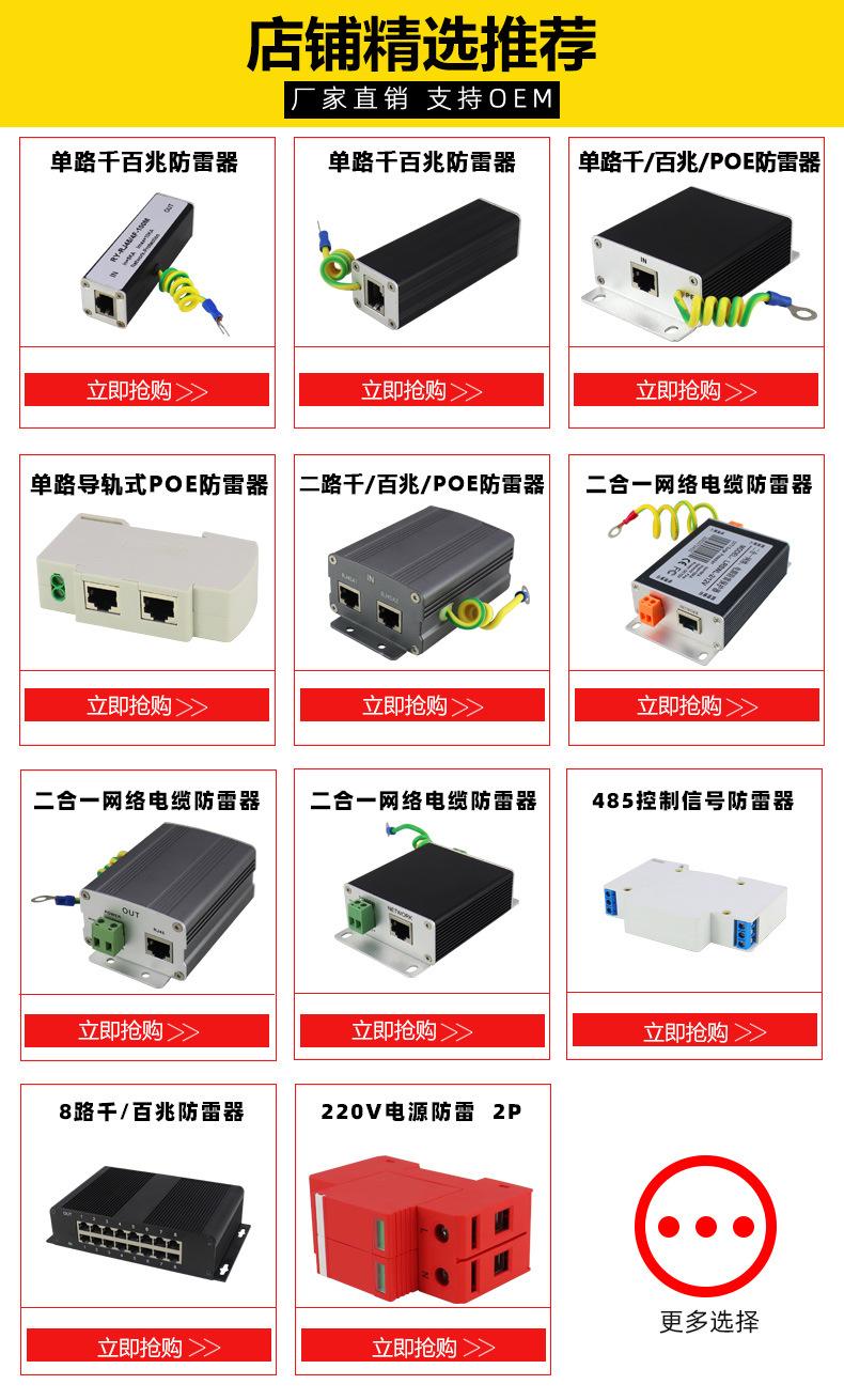 Equipo de protección contra rayos al por mayor de fábrica, protector de señal, interruptor de monitoreo de 8 vías, protector de señal de red gigabit, protector de rayos