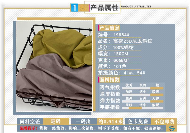 Tejido de Forro de Chaqueta de Algodón Nylon de Alta Densidad 25D Sarga Nylon Impermeable Verano Ligero Protección Solar Tejido para Ropa
