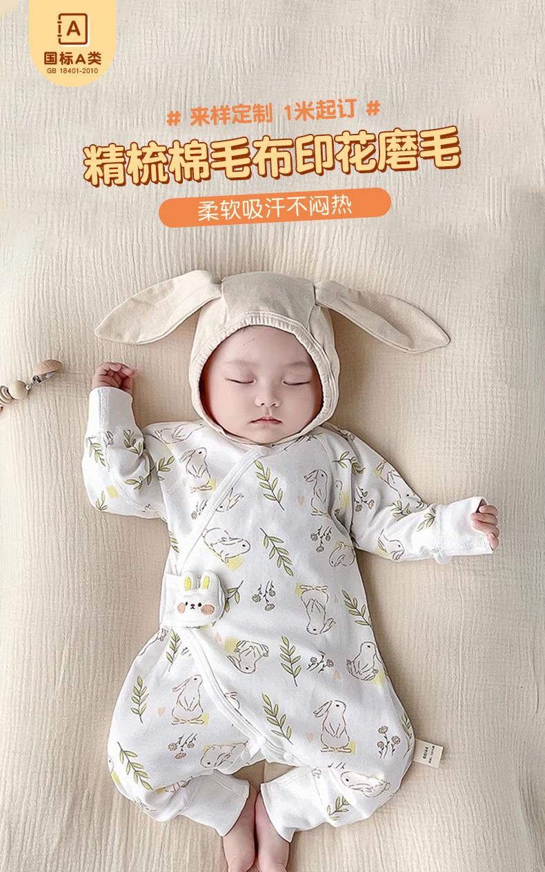 Tela de punto de algodón para bebé, con estampado de dibujos animados, lijado de doble cara, tela de algodón y lana, tela peinada de los años 40 para uso doméstico.