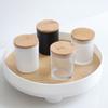 Vaso para vela de vidrio esmerilado, portavelas de aromaterapia, vaso vacío para bricolaje, recipiente con tapa de madera, vaso de vidrio para aromaterapia, recipiente para cera hecho a mano