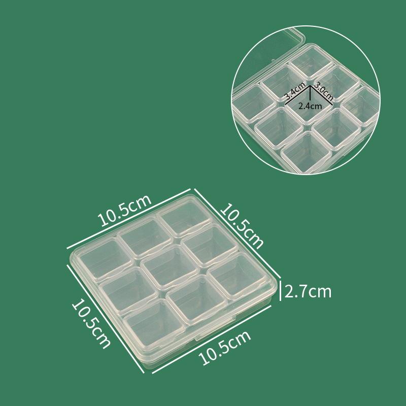 9 in 1 box 10.5*10.5*2.7cm, 15-in-1 box 17.4*10.6*2.6cm, 30 in 1 box 21.1*17.5*2.7cm