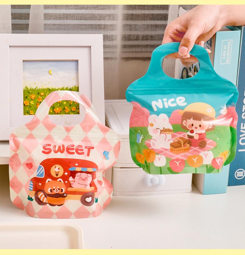 Bolsa de almacenamiento portátil de cachorro de dibujos animados lindo, bolsa de embalaje autosellable para joyería, bocadillos, regalos, Día del Niño, cumpleaños, bolsa autosellable