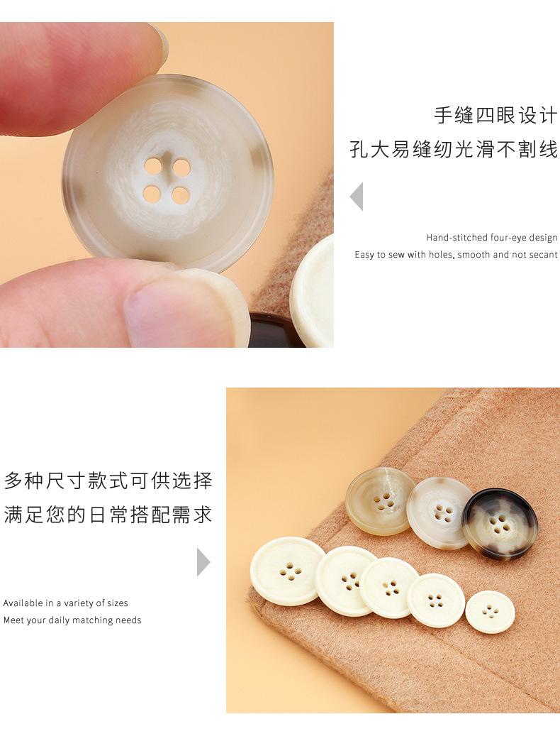 Botón de resina para traje, puños de traje, abrigo de lana, gabardina, cárdigan, botón grande decorativo de alta gama con cuatro ojales