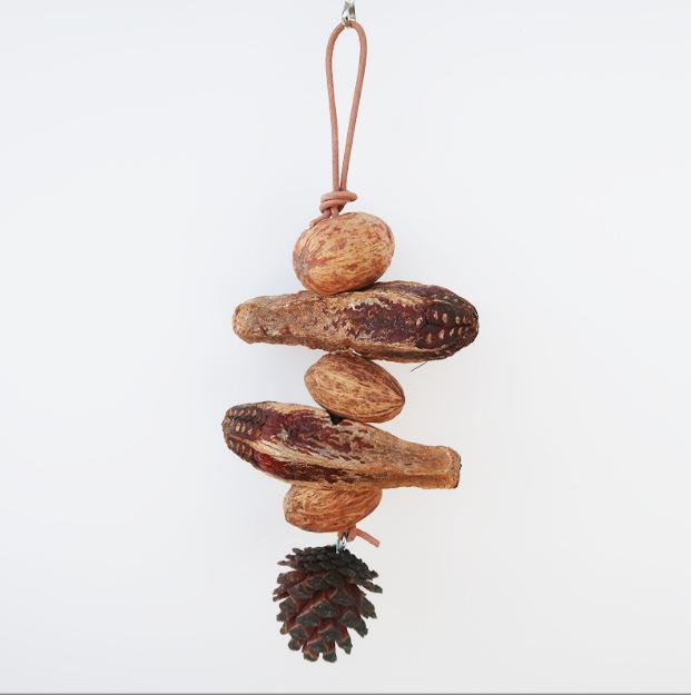 Juguete para loro, fruta, cuerda para morder, carambola, pino, piel de coco, flor de loto, pimienta, madera, molares, suministros al por mayor