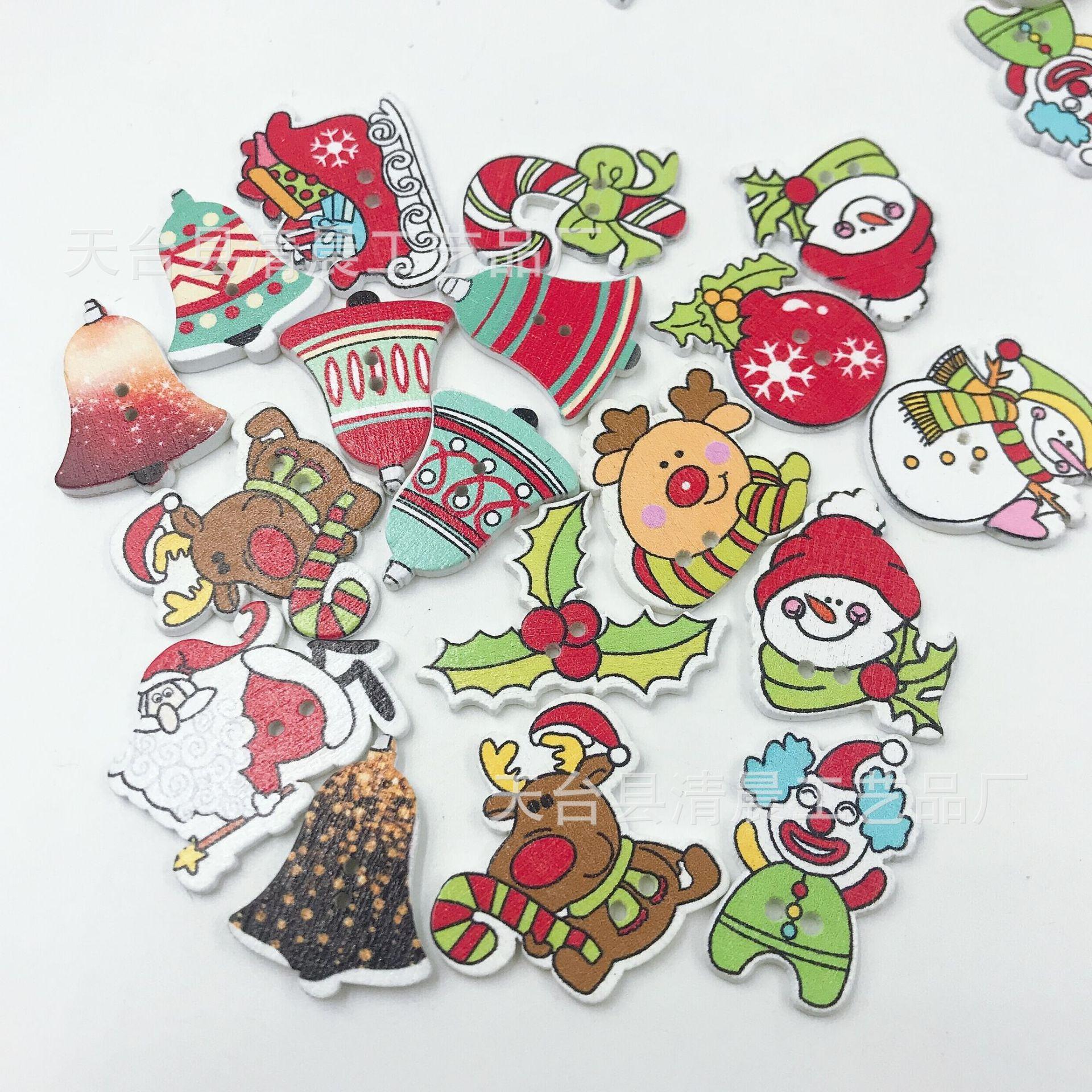 Nuevo botón decorativo de madera navideño de dibujos animados, botón decorativo de madera DIY, botón de madera pintado, madera, paquete de 50