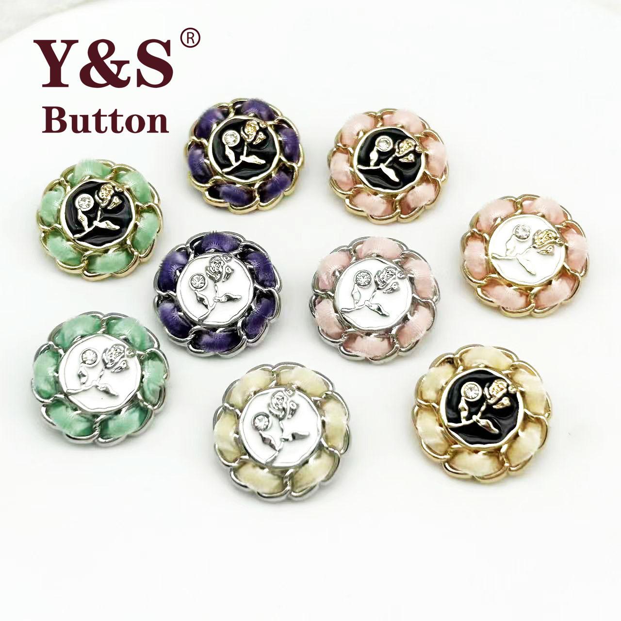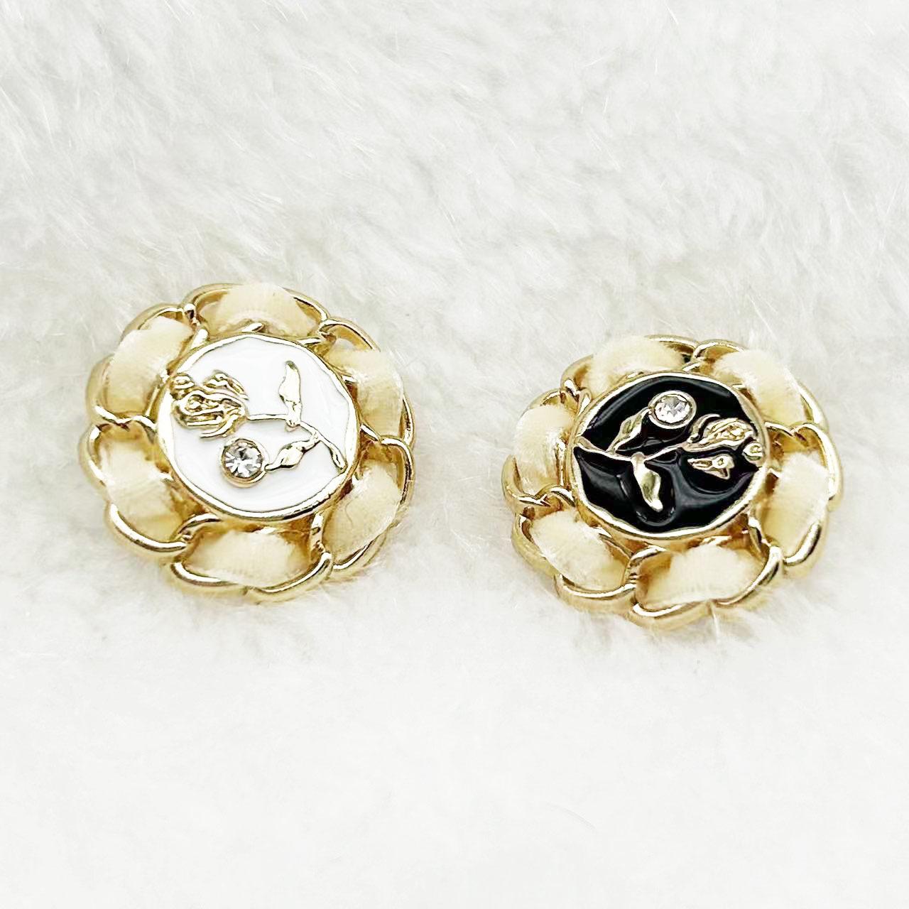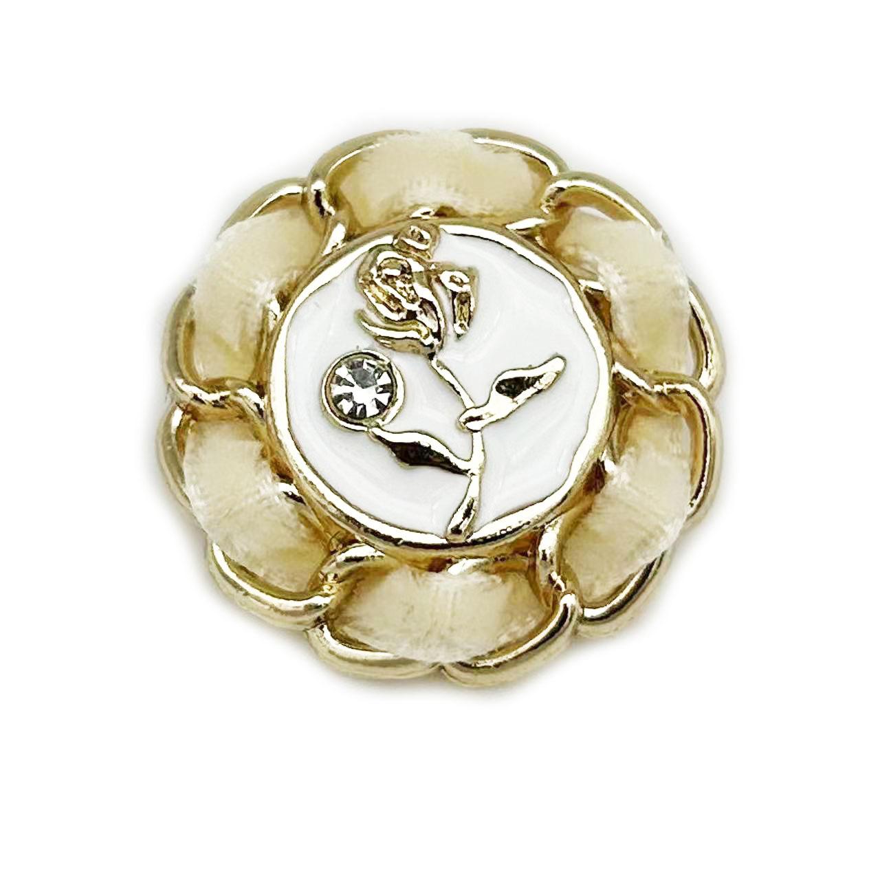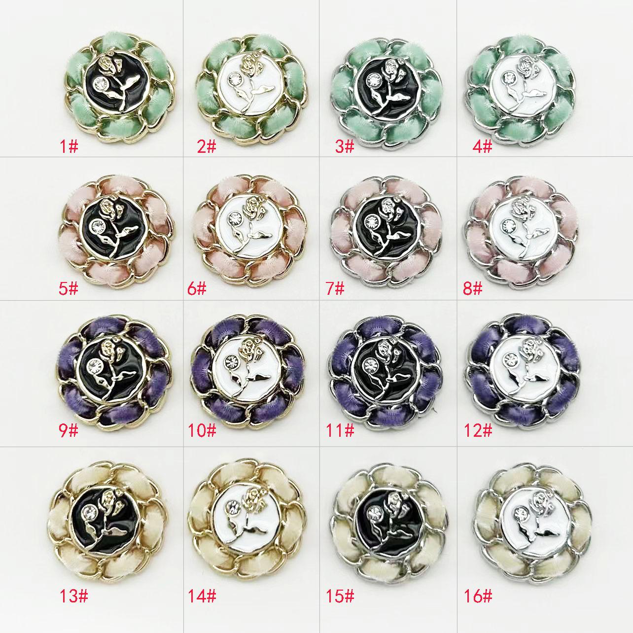 Botón estilo Chanel nuevo metal Rosa Punto aceite Diamante incrustado botón de cuerda suéter para mujer abrigo suéter decoración