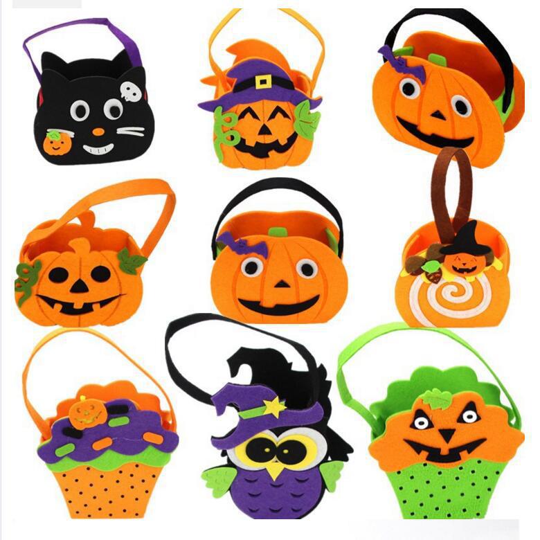 Bolso de Mano de Halloween Estilo Cesta Variedad Bolsa de Fieltro de Calabaza Cesta de Caramelo de Mano para Niños Bolsa de Regalo DIY Adornos Colgantes