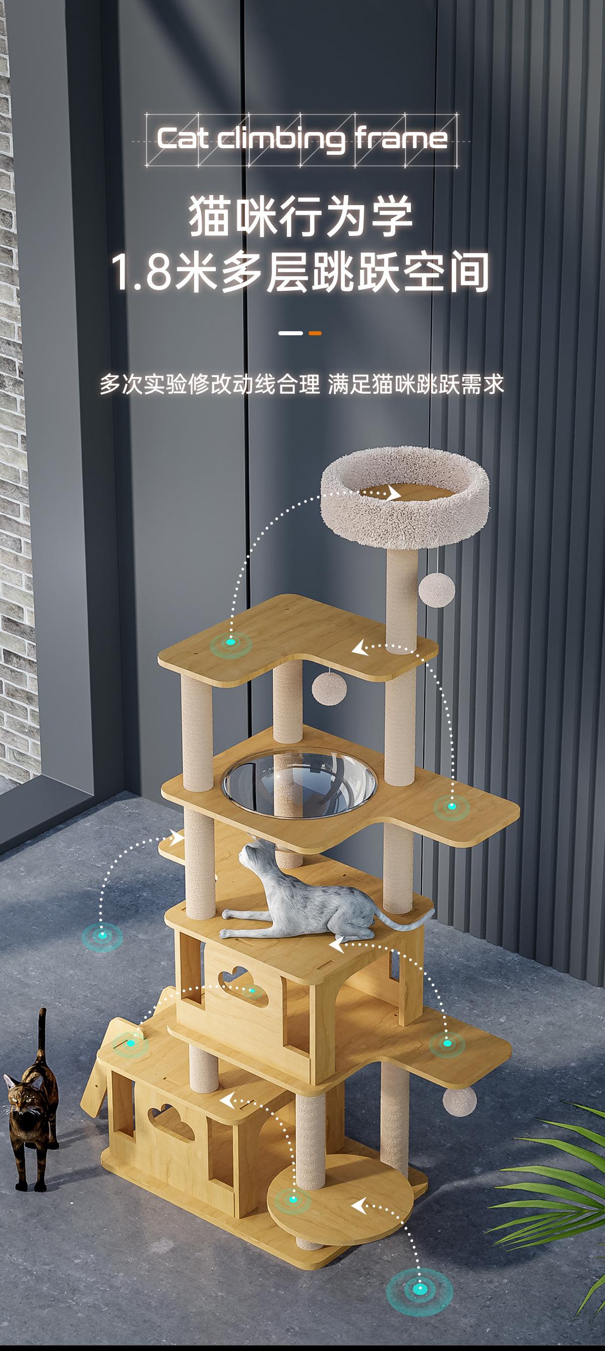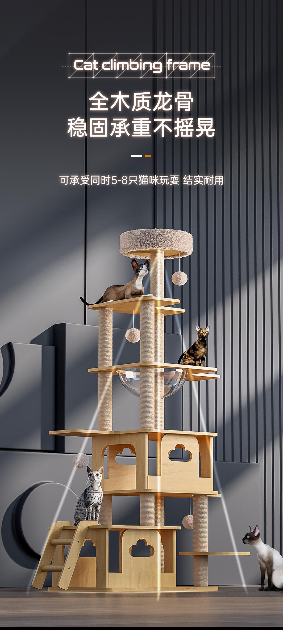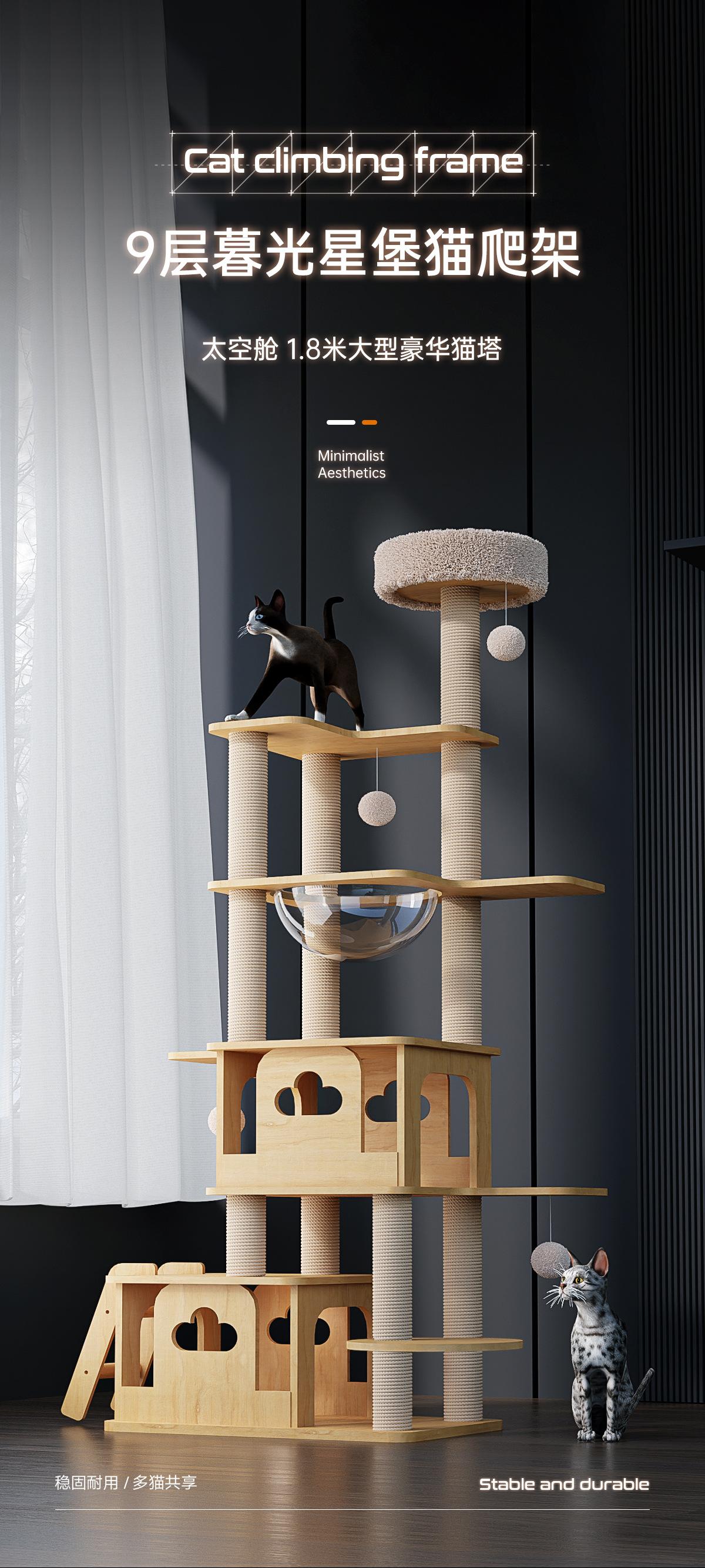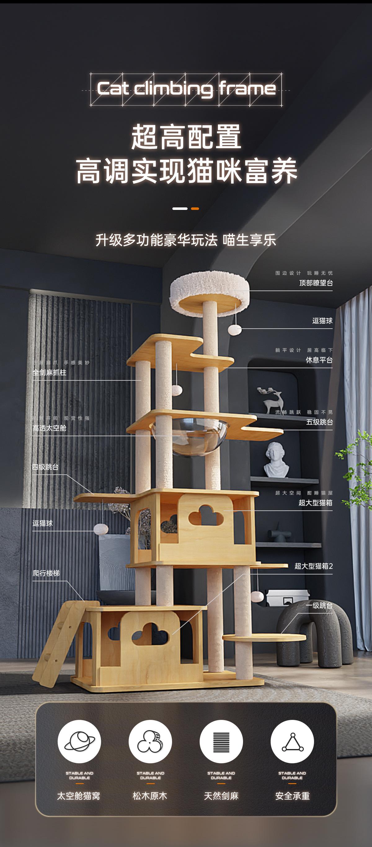 Rascador para Gatos Nido para Gatos Árbol para Gatos Columna de Sisal Integrada Mesa para Saltar para Gatos Tabla para Rascar Cápsula Espacial Madera Sólida Suministros para Gatos Colección Completa
