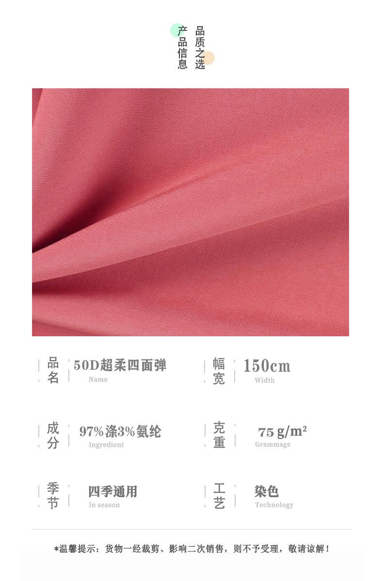 Vestido de Tejido de Alta Densidad Ultra Suave de Alta Elasticidad 50D elástico en cuatro direcciones Liso Forro de Poliéster Elástico