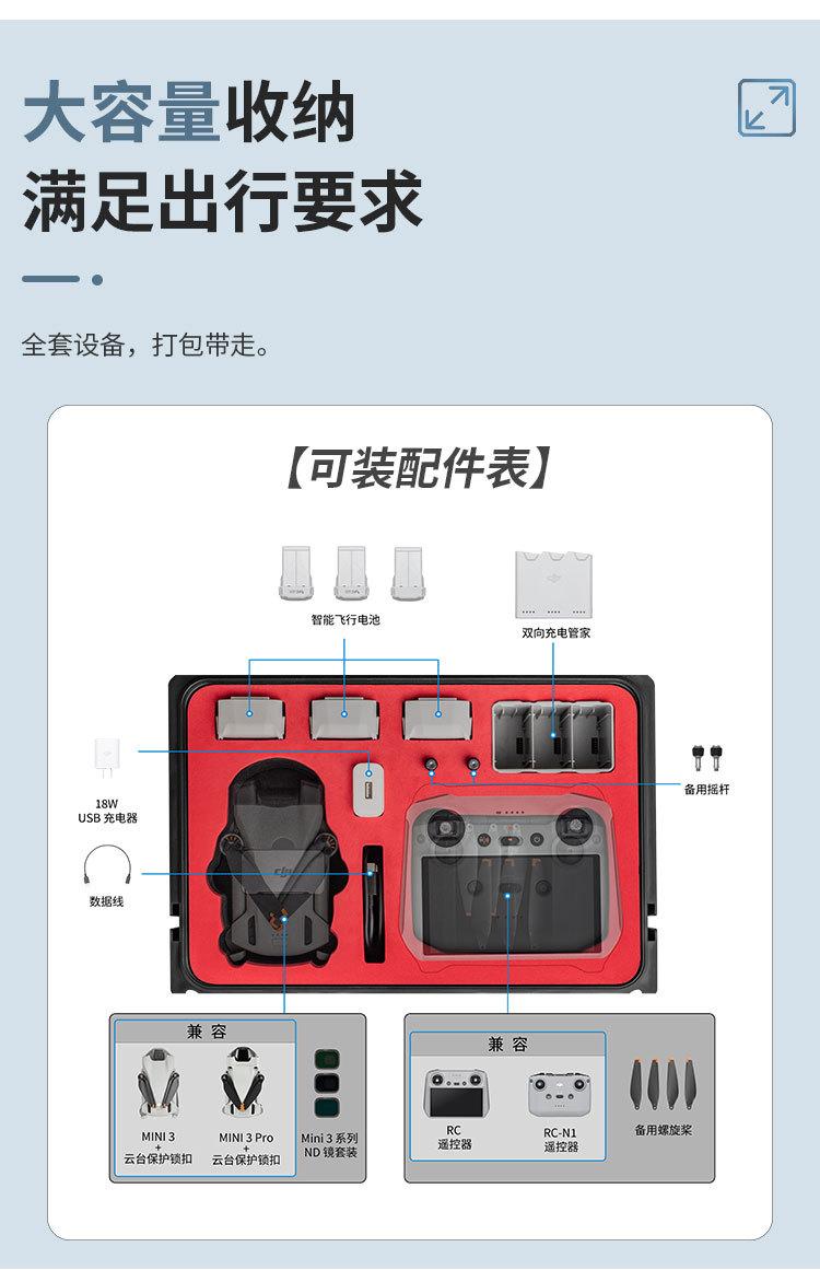 Startrc Es Adecuado para Dji Mini 3/3Pro Bolso Diagonal Caja ABS Impermeable Caja de Accesorios para Dron