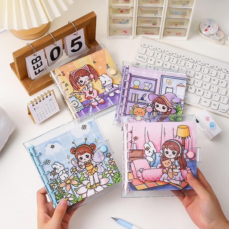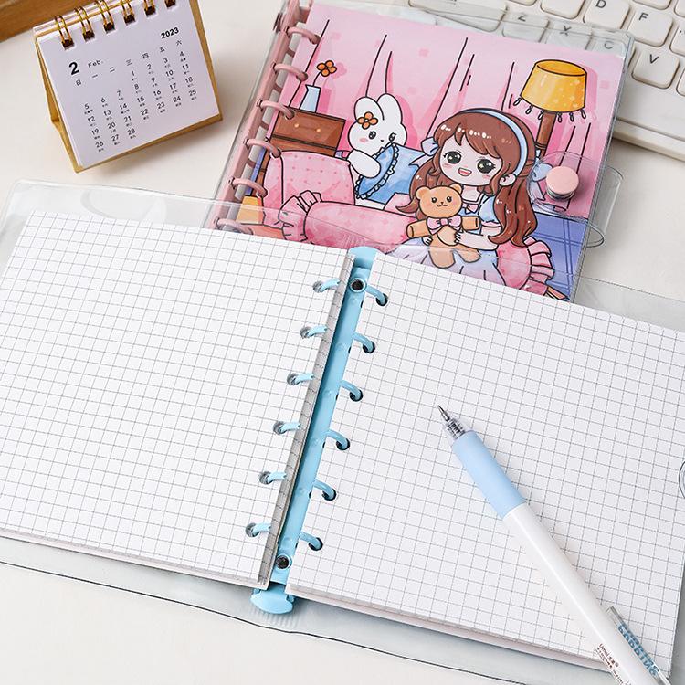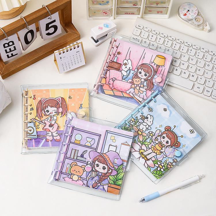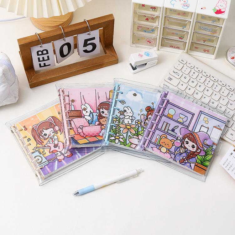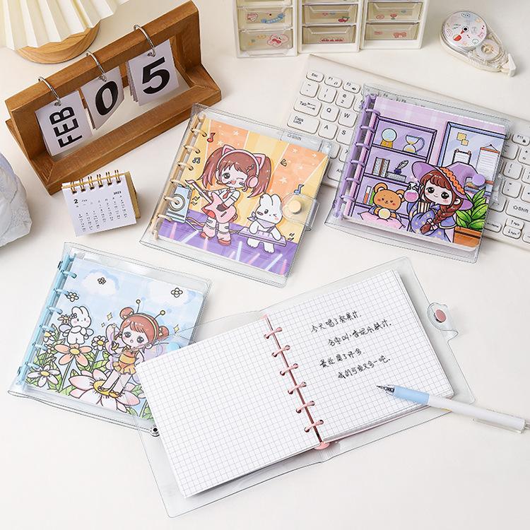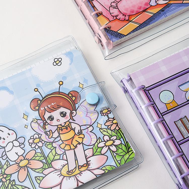 Libro de cuentas a mano con cubierta de PVC de corazón de niña de dibujos animados lindo para niños, estudiante de secundaria, cuaderno de cuentas a mano, papelería para niñas