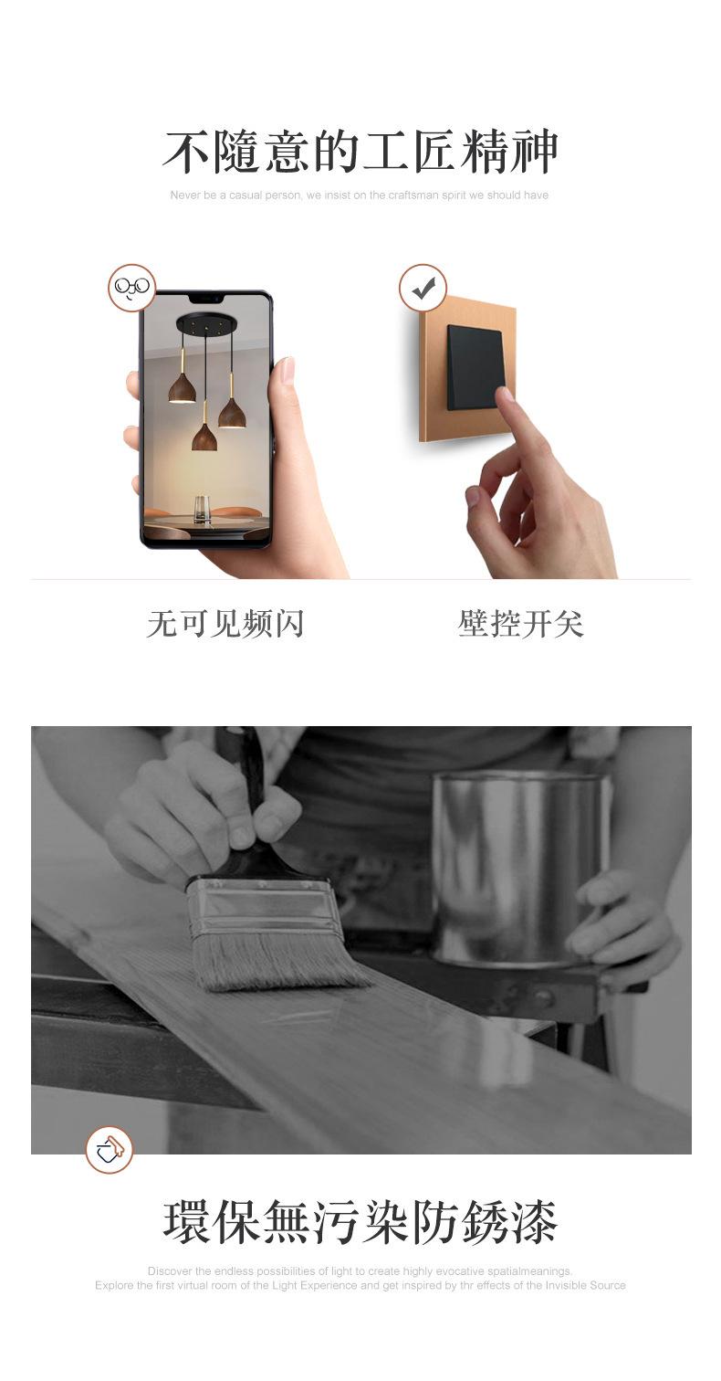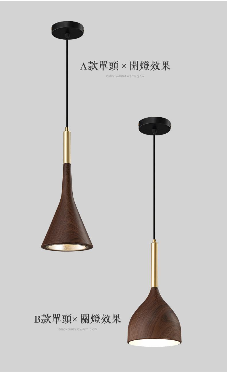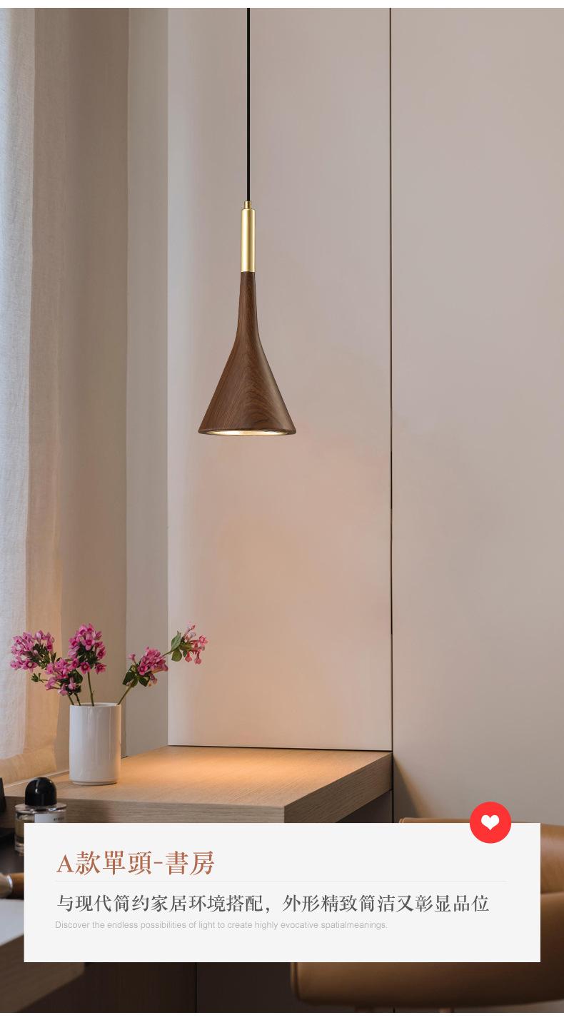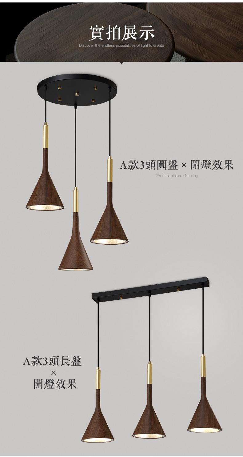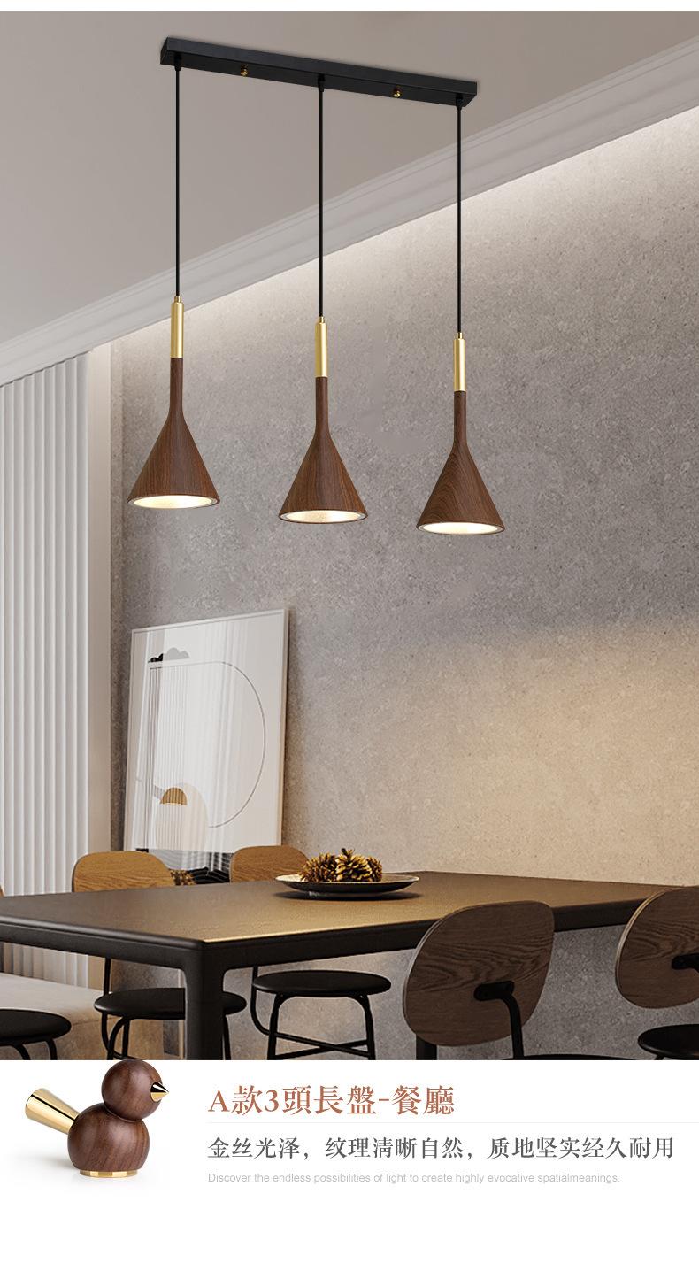 Lámpara de araña de restaurante, tres luces nórdicas modernas, sencillas y creativas de Zhongshan con vetas de madera, para mesita de noche, comedor, cafetería y bar.
