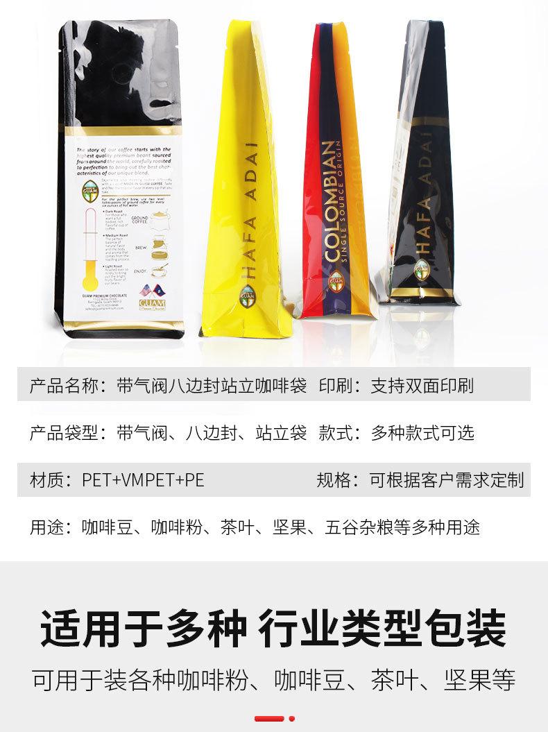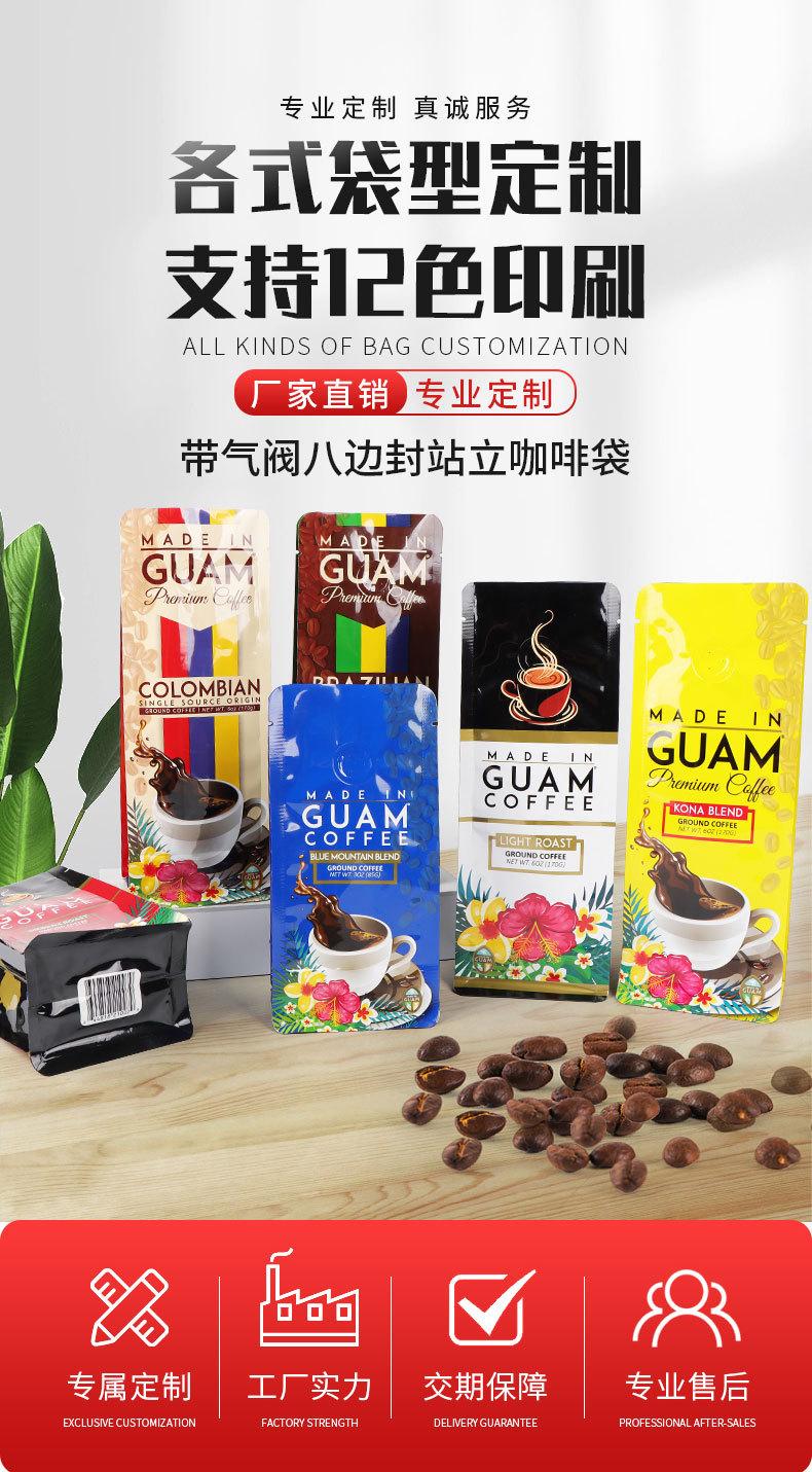 Bolsa de embalaje de café reciclable con válvula de desgasificación, sello de ocho bordes, impresión de logotipo y marca registrada, plegable, para alimentos, autoestable