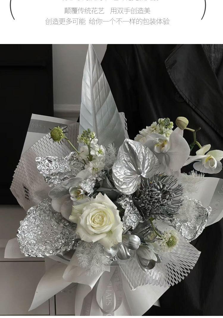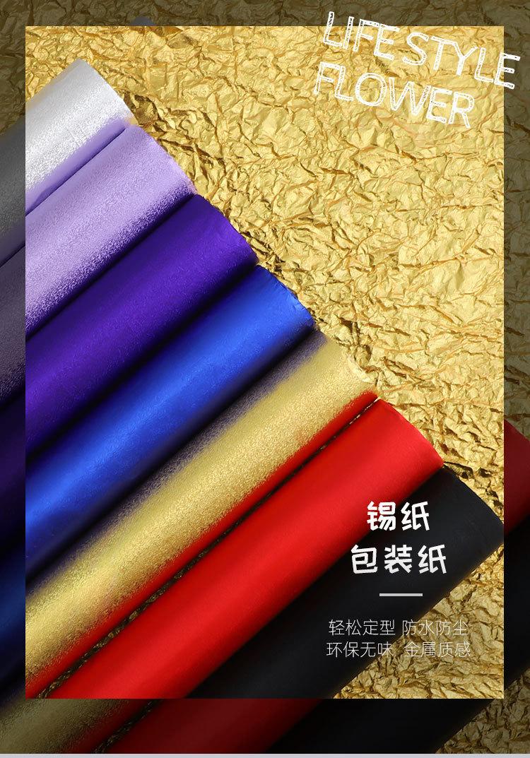 Papel de hojalata Xi Hua Nong para envolver flores, amasado a mano, impermeable, papel de aluminio para dar forma, material para manualidades con flores en tiendas de flores.