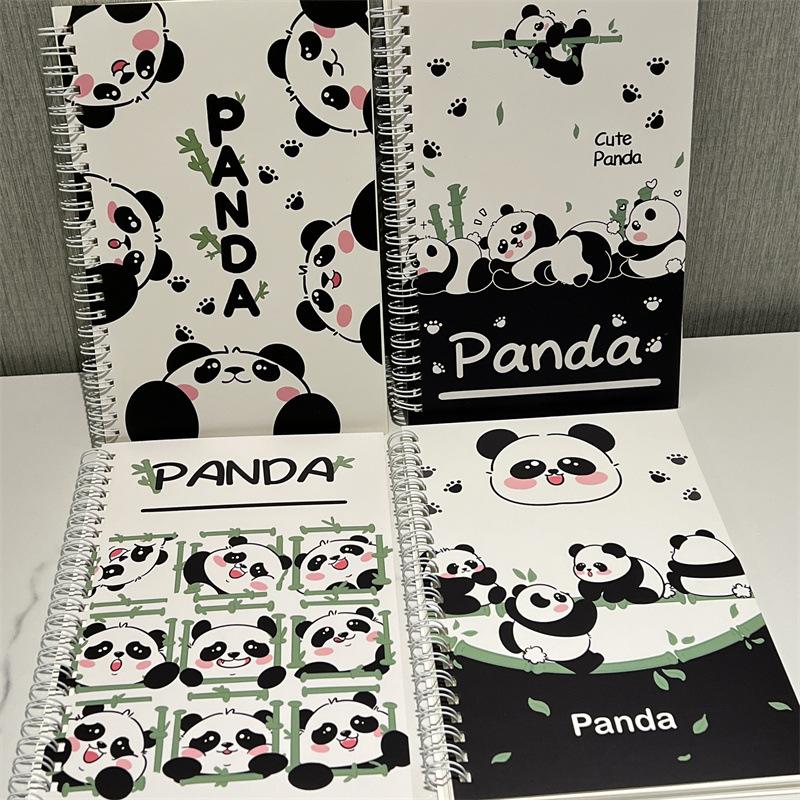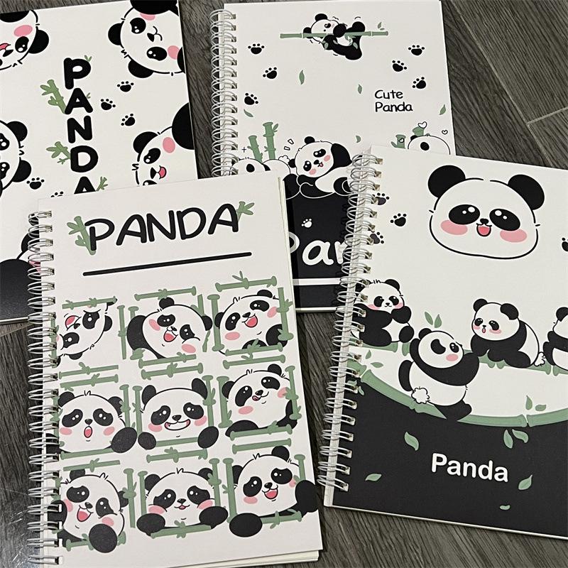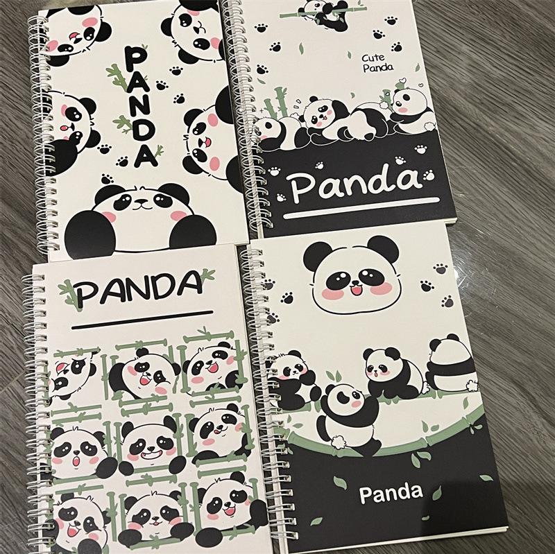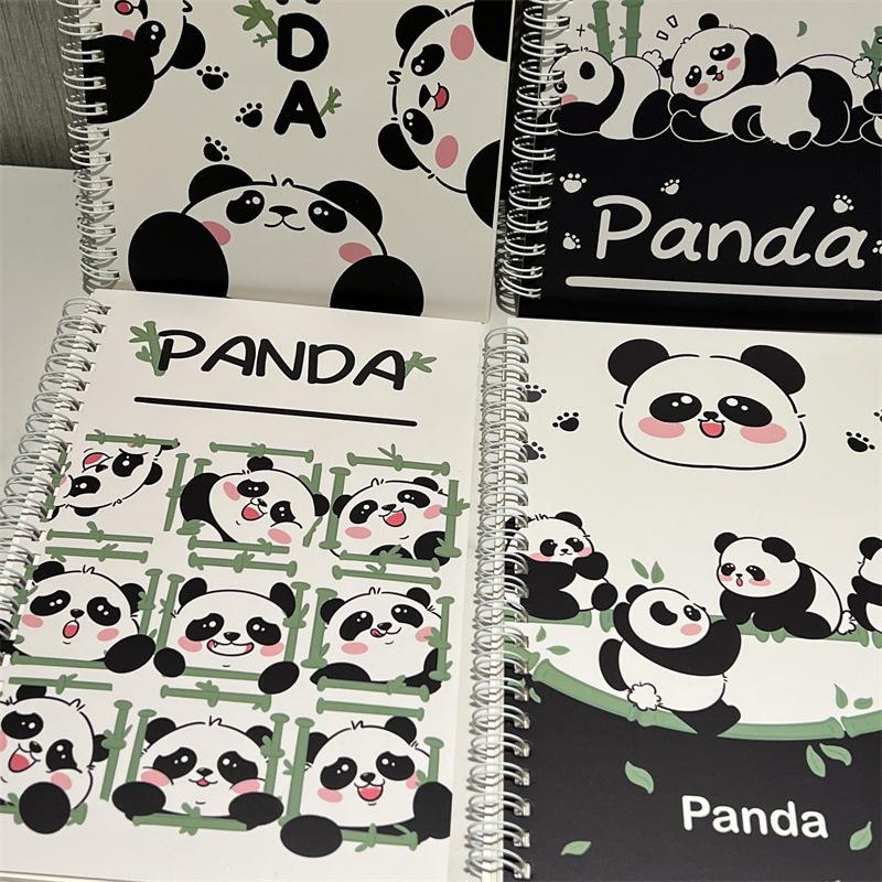 A5 Libro de Espiral Panda Pequeño Estilo ins Alto Valor de Color Libro Engrosado Línea Horizontal Corazón de Niña Cuaderno de Estudiante Negro